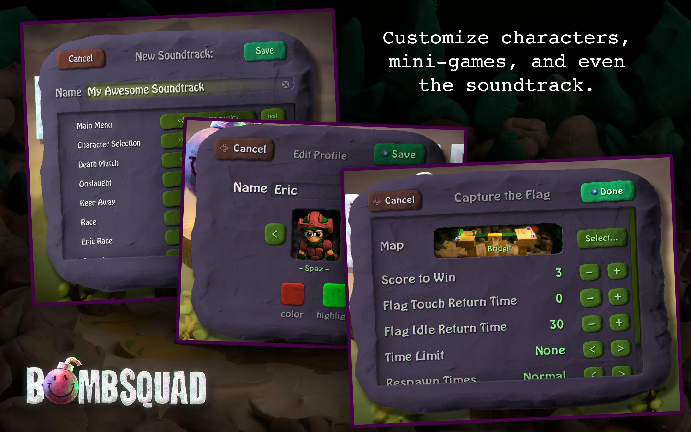 Blow up your friends in mini-games ranging from capture-the-flag to hockey! Featuring 8 player local/networked multiplayer, gratuitous explosions, advanced ragdoll face-plant physics, pirates, ninjas, barbarians, insane chefs, and more. BombSquad supports touch screens as well as a variety of controllers so all your friends can get in on the action. You can even use phones and tablets as controllers via the free 'BombSquad Remote' app. Bombs away!...