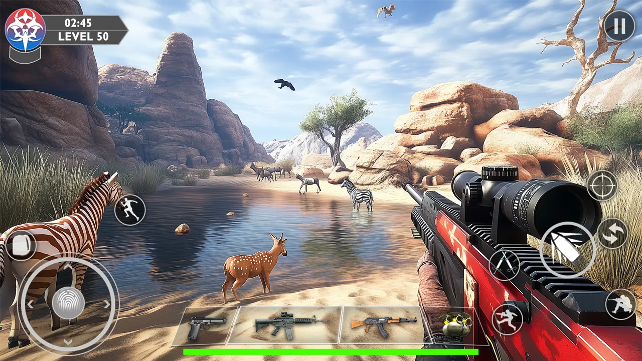 Deer Hunting: FPS Sniper Games Wild animals like deer hunting are difficult in the jungle games. Sniper hunting is adventurous for deer shooters in the sniper hunting of deer games. Use sniper guns as a stag hunter in deer hunting clash of sniper shooting games. A deer hunter may have to chase stag in big buck and animal hunting games. Most wild animal games are about deer hunting. Improve your stag hunting clash deer shooting skills using sniper 3d in gun games offline. Keep yourself safe from other wild animals in the gun shooting of deer games. Have a good grip on an animal simulator of a deer hunting sniper gun so that the target is not missed by deer shooters of stag hunting and deer shooting games. The animal simulator graphics for deer hunting game modes are loved by the stag hunter of sniper gun shooting games offline. Big Buck Wild Hunting Animal Games Start your journey of deer hunting in the wild animal simulator of a real deer shooting game. Enjoy playing animal hunting games 3d in leisure time. The environment of deer hunting games consists of big bucks to hunt using sniper guns. Aim big as a big buck hunter in the gun shooting of deer games. Dare enough to complete an animal simulator adventure of deer hunting in the jungle of safari using sniper gun games. Deer hunting demands high gun shooting skills as a deer hunter of wild animal hunting games. If you like to hunt deer or big bucks in the wild forests then this deer shooting game is for stag hunters. Claim the title of a pro deer hunter in the stag shooting of deer hunting games offline 3d. Use a selective approach in deer hunting sniper games. Challenge your friends in the gun shooting of deer games ...
