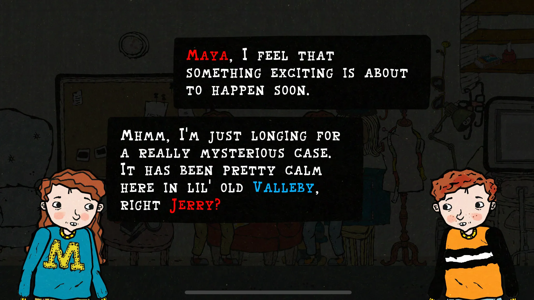 Unleash your inner detective and embark on an exciting puzzle adventure with The JerryMaya Detective Agency, a crime-solving mystery game for kids! Based on the popular Swedish children's books, this interactive platformer game is perfect for kids aged 6-12 and their families. Explore Valleby and put your detective skills to the test by solving puzzles and navigating tricky platformer levels. With engaging gameplay and endless fun, this family-friendly game is sure to keep kids entertained and learning. With almost limitless variations of mysteries available, The JerryMaya Detective Agency is the perfect combination of fun and education. Subscribe to gain unlimited access to the full game and all of Valleby's secrets. Stay tuned for brand new content and expansions featuring more wacky characters, iconic locations, and fun new features! ...