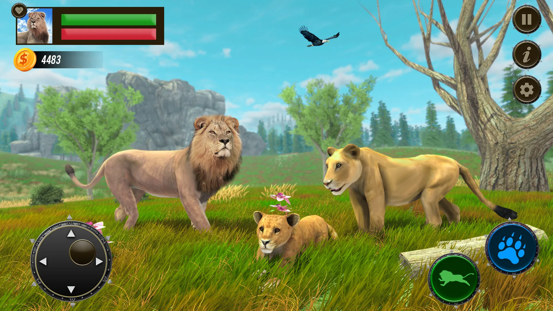 Get Ready to Become Jungle King In the Savanna Forest! Live the life of wild lion in the dark jungle with your family and survive to raise your king breed while playing jungle kings kingdom lion family simulator. Furious stunning 3d world jungle Lion Sim is an adventure RPG game which has challenging quests and fighting missions against wild predators like an angry wolf. Protect your family from these predators and enjoy the jungle simulator animal games. Your ultimate wild lion is monarch of the luxurious green land in this wild lion family kingdom 3D simulator. Like the perfect lion games animal simulator 3d eat meat to increase your health and stamina to raise your jungle king family breed by playing this beautiful forest lioness queen family simulator king of forest. Ultimate lion teach the baby cub about 3d attack in this family sim. In lion simulator game lion king player teaches about hunt and survival in the jungle wildlife in this ultimate lion game free. Lion has its beautiful home in green jungle survival game wild lion simulator 3d. When you will be outside from your beautiful house you will see the lion tiger fight also in this 3d game. ...