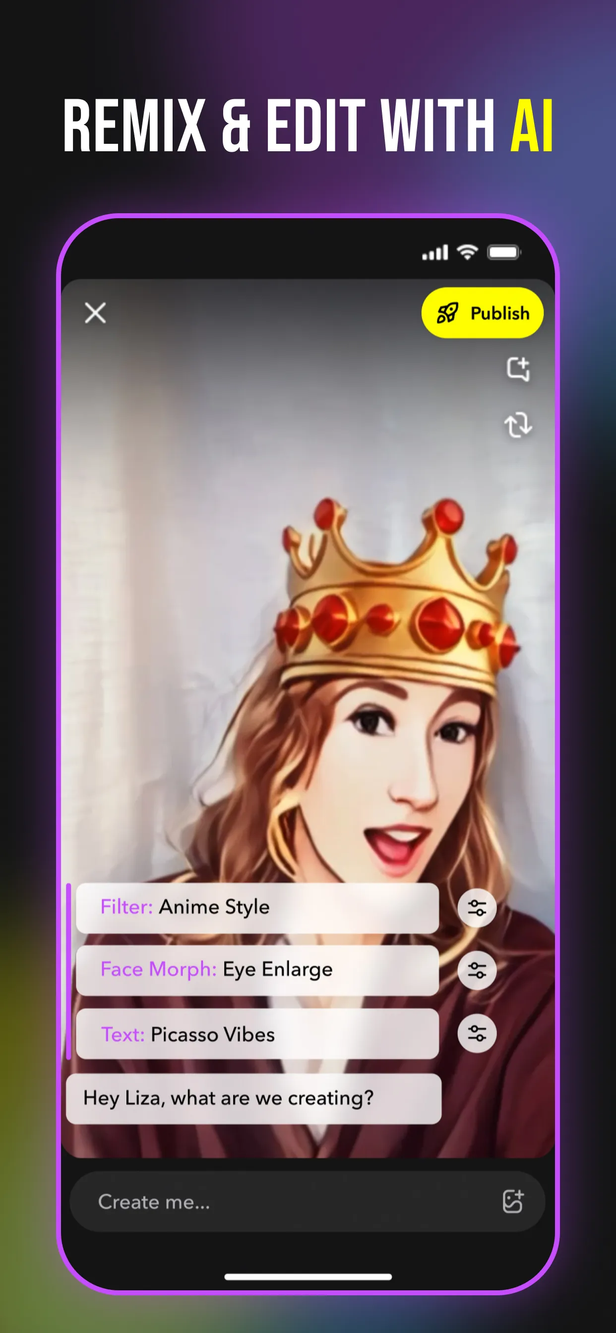 An app for Lens enthusiasts, discover new Lenses, remix them, and create your own games, quizzes, makeup looks, and more—it all starts with a conversation. • Discover Lenses across beauty, funny effects, and immersive experiences. • Create Lenses easily with AI, no technical skills required. • Remix to personalize Lenses for your custom use case. • Share your Lens and reach Snapchatters or other creators