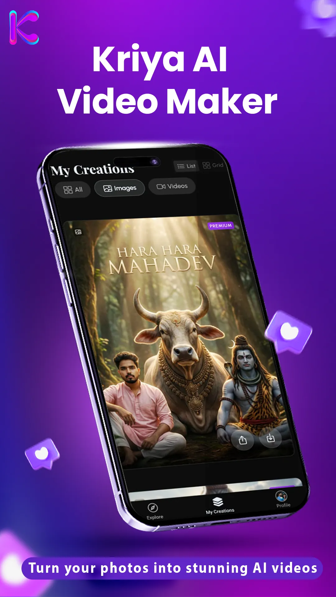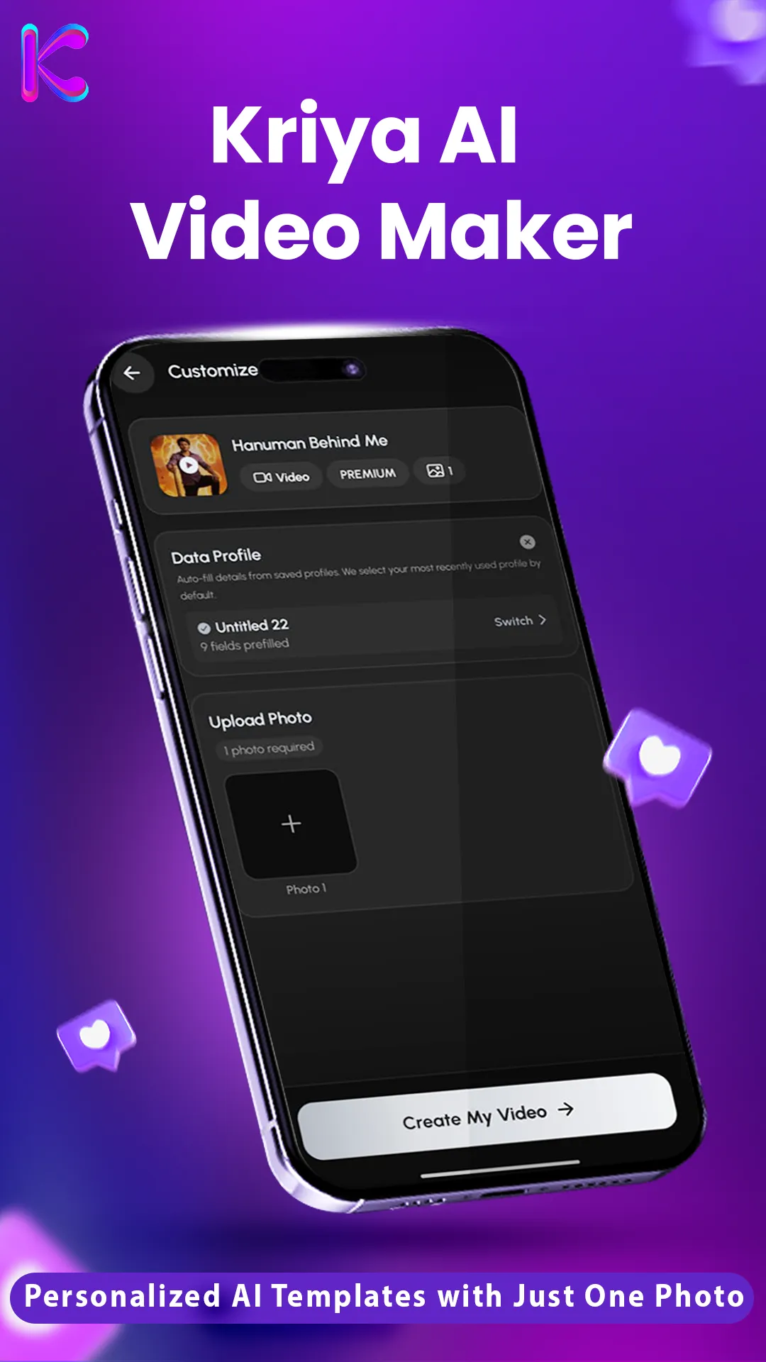 Kriya AI – Video Maker helps you turn your photos into beautiful, AI-powered videos for birthdays, love, anniversaries, family memories, and everyday moments. Simply upload your photo, choose a template, and let AI transform it into a stunning video you can share with the people who matter most. Creating emotional videos has never been easier. You don’t need editing skills, complicated tools, or design experience. Kriya AI handles the animation, effects, music, and transitions automatically, so you can focus on celebrating the moment. Whether it’s a birthday surprise, a romantic memory, or a special message for someone you love, your video is generated with cinematic style and personal touch. Every template is designed to make your photos come alive. From soft romantic themes to energetic birthday edits, Kriya AI creates videos that feel meaningful and ready to share. Within a few minutes, your personalized video is ready to download and post on Instagram, WhatsApp, Facebook, or any platform you choose. ...
