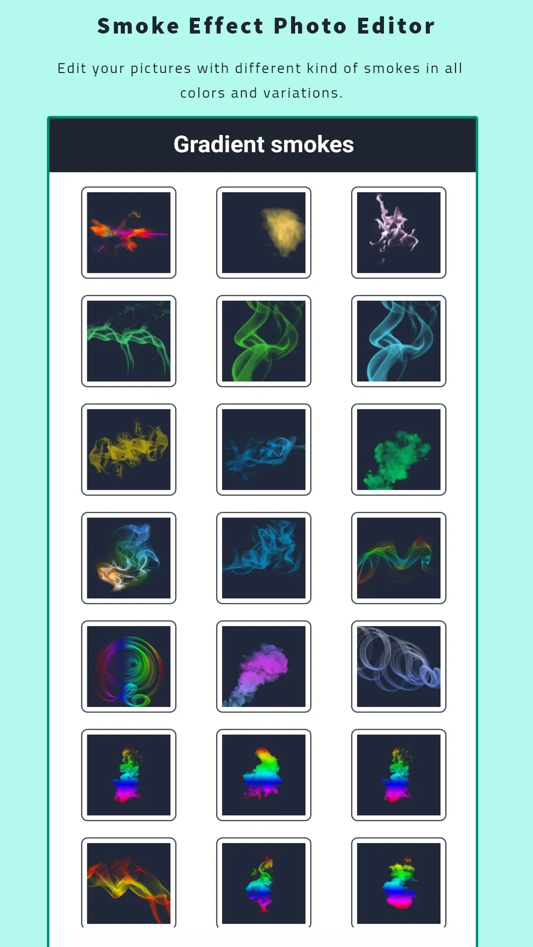 Smoke Effect Photo Maker is a Photo Editor which lets you edit your pictures with different kind of smokes in all colors and variations. Smoke effects photo Editor application you are able to take photos with smoke effects and make professional photos using your phone camera, Smoke Effect Photo Editor app provides you with a variety of smoke effects and different types of Free Smoke effects amazing. Prank now everyone like you where a big Smoker or Smoke Artist with cool Tricks and Effects. Apply many Filters which brings your Smoke Effect in foreground. How to Use:-...