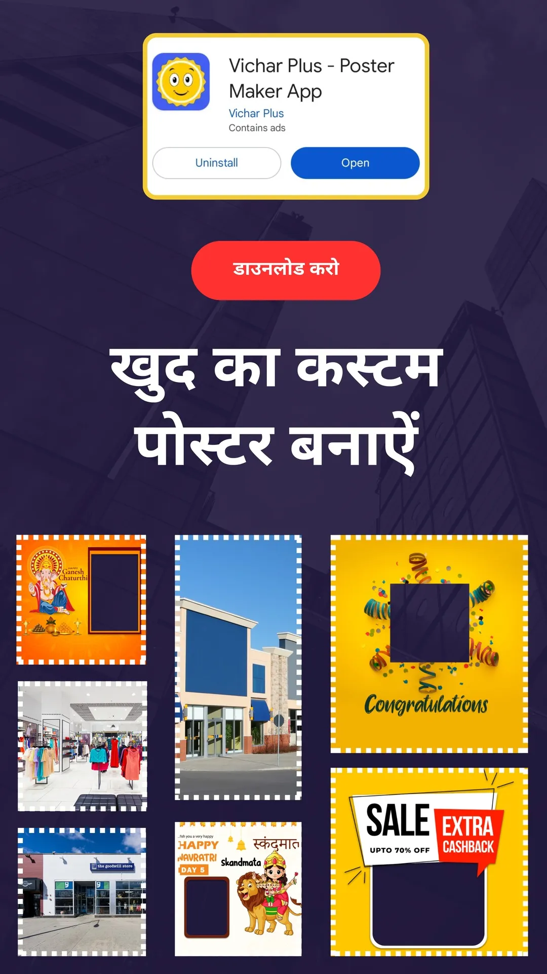 Unleash your creativity and celebrate in style with Vichar Plus - Festival Poster Maker! Whether you're planning a festive event or promoting a seasonal sale, Vichar Plus - Brand Post Maker makes it easy to create beautiful and professional posters that capture the spirit of the occasion. Key Features of Vichar Plus - Festival Poster Maker App : Customizable Templates: Explore a wide range of templates designed for various festivals and events....