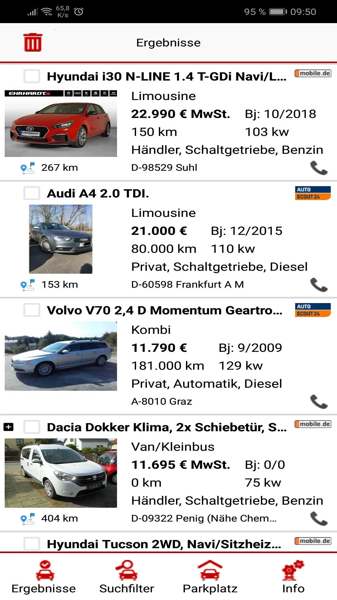 With this app you can easily and easily search for cars, in the search for car advertisements to call the seller directly with a push of a button. You can also activate the auto call feature and the number will be automatically dialed as soon as a matching listing is found. You automatically receive a notification. You see photos and detailed view of advertisements, have an even faster data connection.