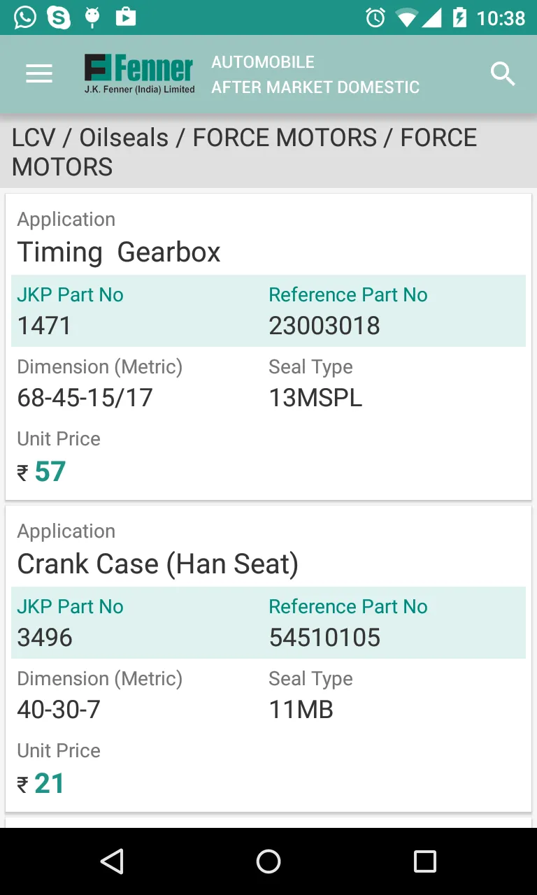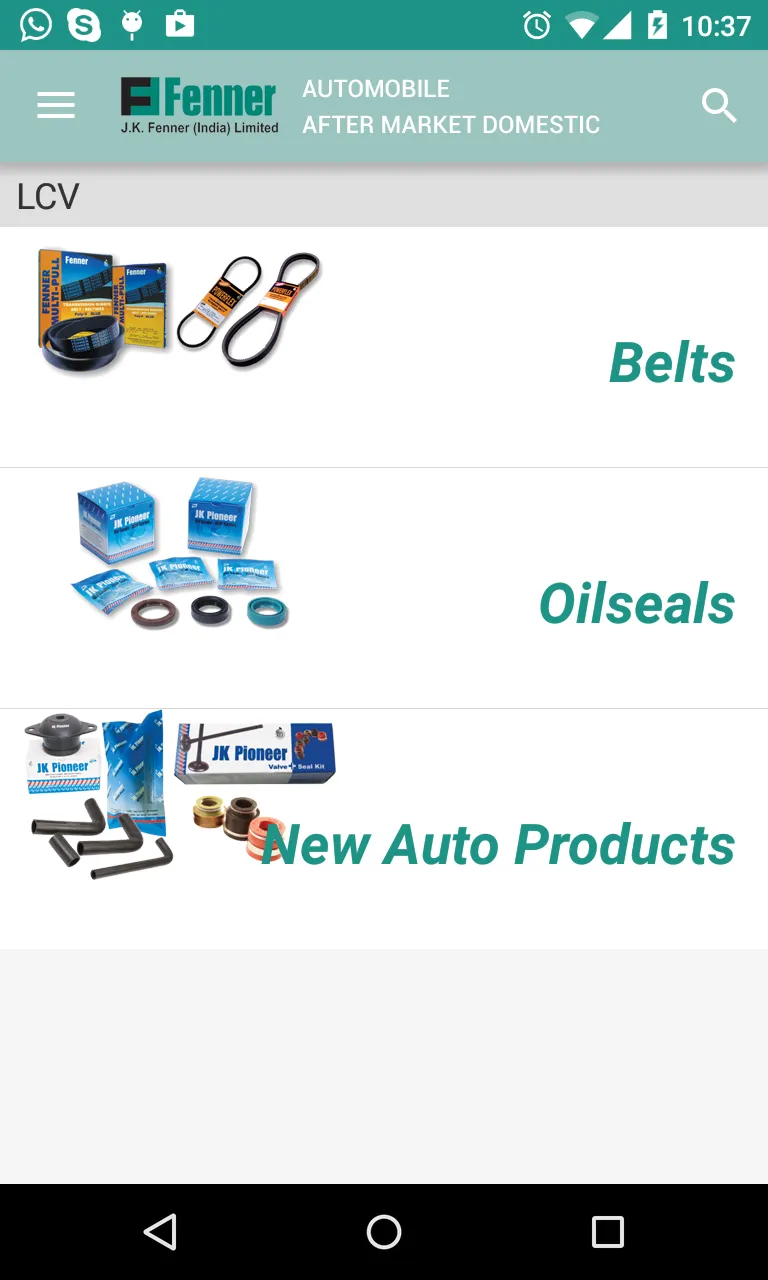 "JK Fenner Domestic E Catalogue" is the official app of J.K. Fenner (India) Limited, India's Auto After Market Domestic Product manufacturer. J.K. Fenner (India) Limited is a member of the JK Organization which ranks among the top Industrial houses in India for over 100 years. Fenner commenced operations in India in 1929 and put up their first manufacturing unit at Madurai in Tamilnadu in the year 1956. Currently there are 7 manufacturing units over 5 locations. In this application you will find all of the information about the Auto After Market Domestic Products such as Fenner Belts and JK Pioneer Oil Seals, EPDM Radiator Hoses Automotive applications, besides range of other Automobile Accessories – Anti Vibration Mounts, Bush Kits, Center Joint Rubber & Bearing assemblies, Radiator Hoses, Valves (2 & 3 Wheelers) and Belt Tensioners. ...