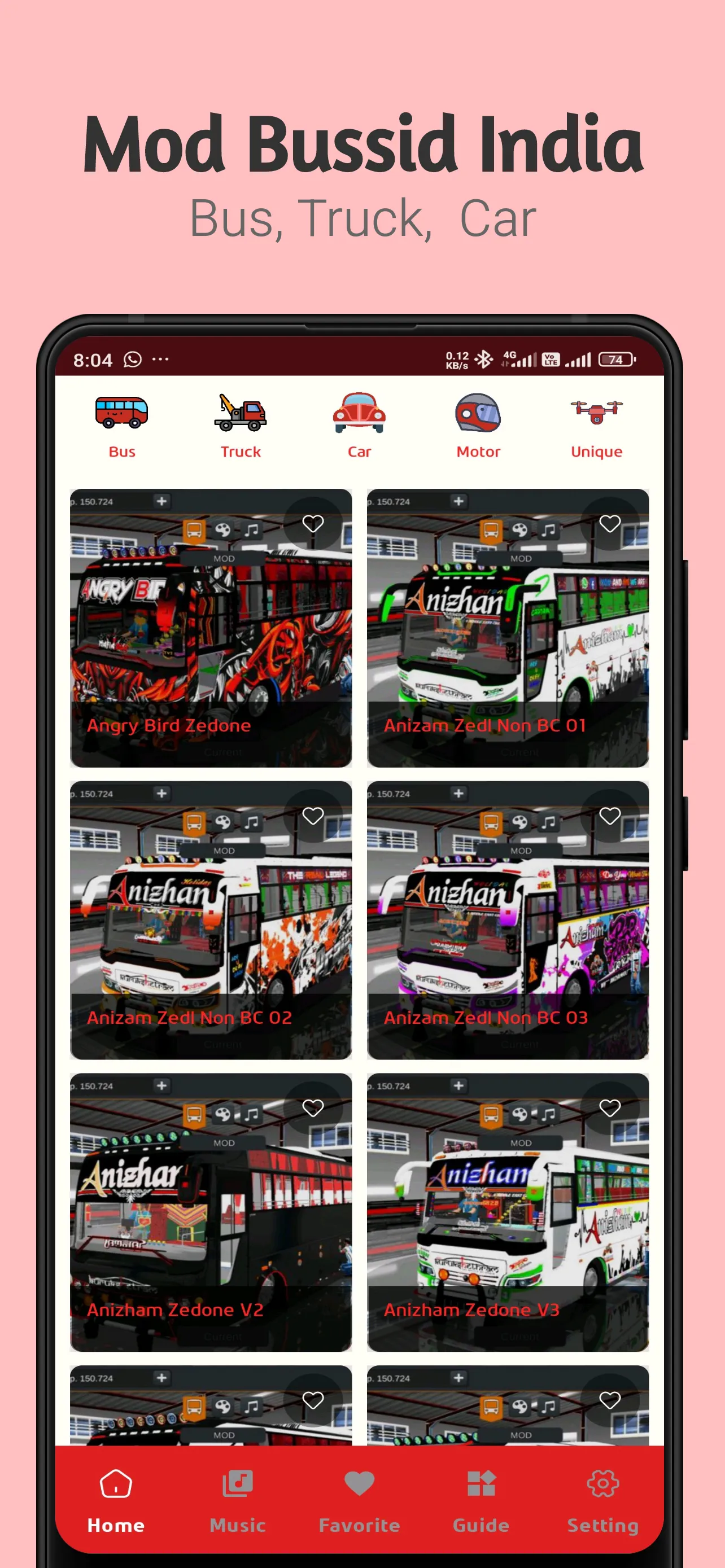 Indian Bussid Mod: Explore the Variety of Indian Vehicles in the World of BUSSID! Want to bring the nuances and diversity of Indian vehicles into your favorite Bus Simulator Indonesia (BUSSID) game? The Mod Bussid India application is here to make that dream a reality! We provide a collection of various Indian vehicle modifications ready for you to download and use in the BUSSID game. Discover and drive different types of buses, trucks, travels, and perhaps even other unique vehicles that you often see on the roads of India. With this application, you can easily find the Indian vehicle mods you like and add them to your BUSSID garage. Experience the sensation of driving vehicles with different designs and liveries, as well as exploring the BUSSID map from a new perspective....