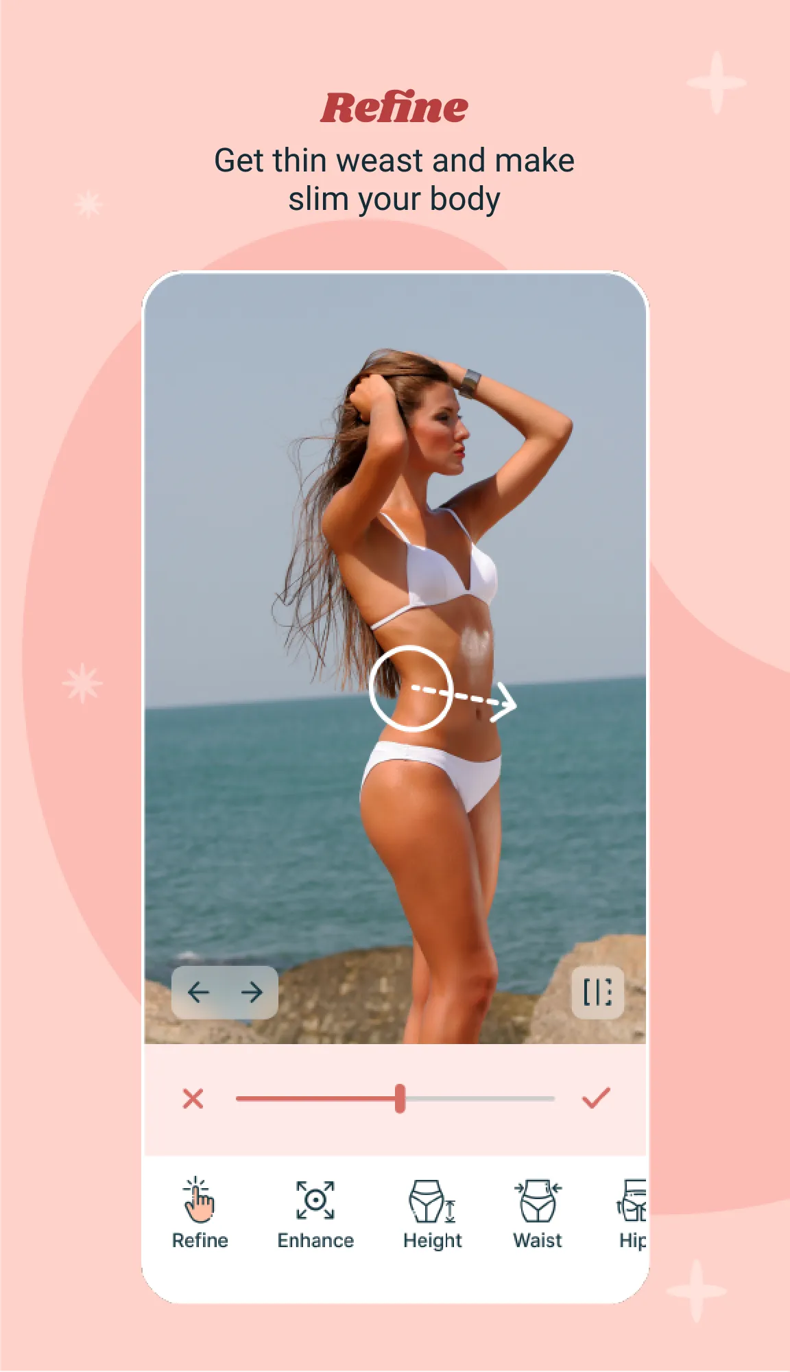 Body Shape & Beauty Editor is a fantastic photo and video editor, free editing both for face and body. It can help you reshape body curves to get a slim body and perfect figure. And you could make me thin, get long legs and firm abs as well as a real tattoo. Also retouch to slim face, higher nose, and bigger eyes. It is easy to plump and light lip and smooth skin. Body Shape is a wonderful face slimming photo editor. Perfect Me is a great photo editor that you can use to retouch your face or body. Retouch Me is very simple and intuitive to use for edit body. With Body Shaper -you can reshape your curves, waist, lengthen your legs, thin your face, and make me thin, make me skinny. Beautify face - Smoothen your skin and remove acne. Professional face smoother and editor. Fantastic blemish remover for you to touch and retouch photo and remove pimple. No need to worry about acne any more....