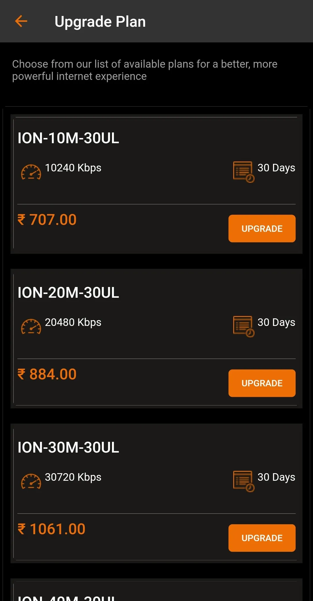ION APP for Retail customers 1. Account and profile management 2. billing and invoice management 3. Account renewal monthly 4. upgrade account with new plans 5. notifications, alerts and offers. 6. Online renewal 7. Customer support and online support 8. Wallet and add money to account 9. Booster plan - speed booster and volume boosters 10. Account and password management 11. Secure account management