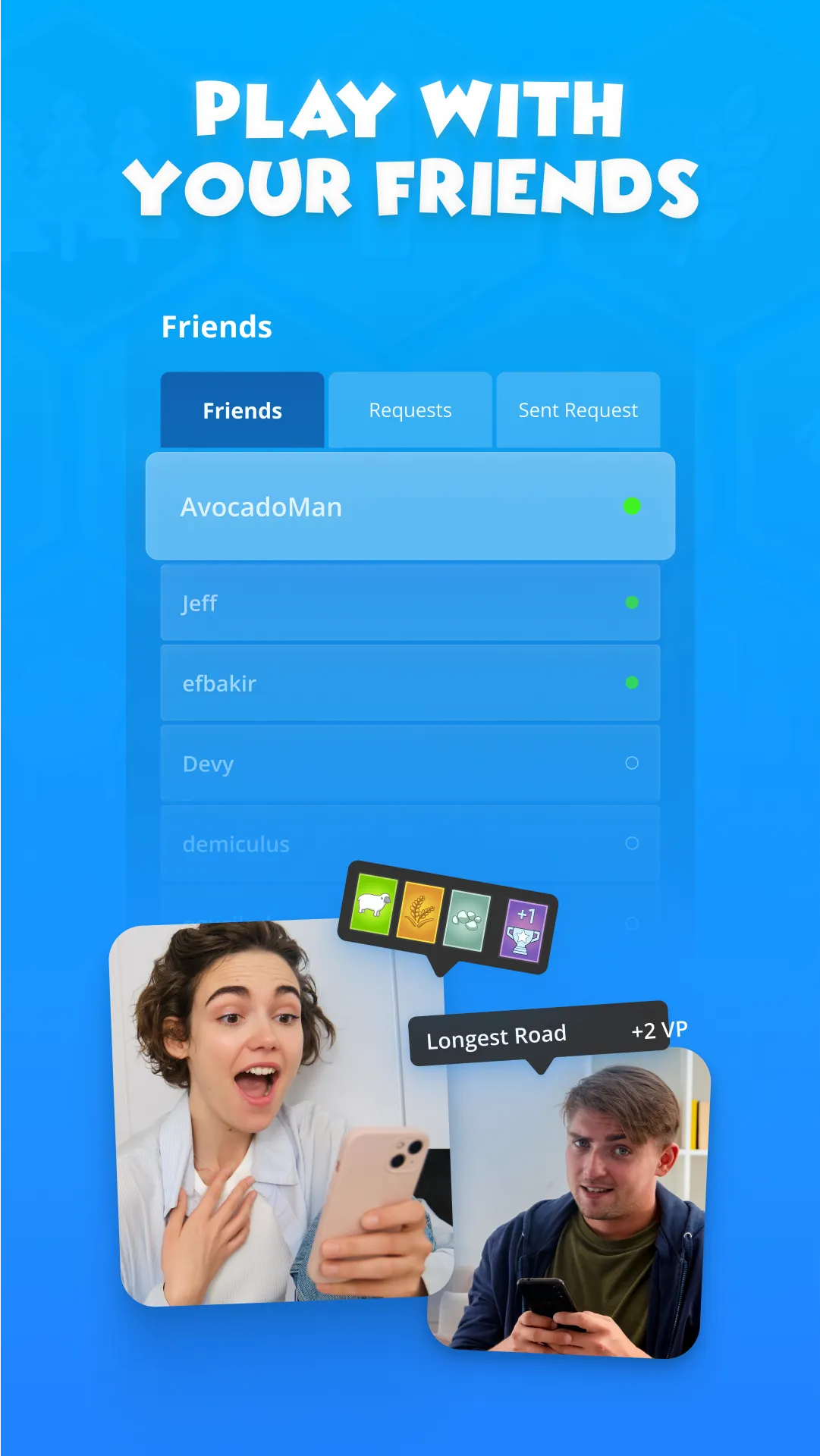 Colonist is a free online alternative to the challenging social and strategy based board game Settlers of Catan. You take on the role of a Colonist by building settlements and expanding your territory. Colonist combines extremely simple rules with tremendously deep gameplay. Use strategy, planning, and cunning negotiation to win. You can train against bots, play with friends online, and even compete in our ranked mode for a spot on the leaderboard! We also offer a variety of fun custom maps to ...