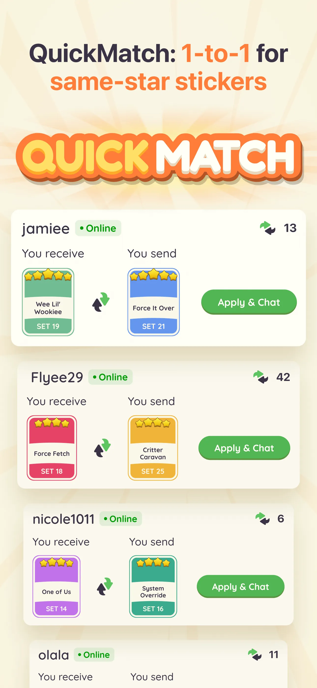 StickerHub — the ultimate all-in-one app for MONOPOLY GO! players! StickerHub is a safe and fast MONOPOLY GO! stickers trading app that helps you get daily updated free dice and special rewards, stay on top of event schedules, connect with an active community, and complete your album faster. · Find Cards Easily: Search for missing cards or match your extras with players who need them. Automatically match with users who need your duplicates and update your collection faster. · Trade Stickers Quickly: Send trade proposals, ensure every exchange is fair, chat with players directly and get real-time updates on sticker trading. · Free Sticker Giveaways: Take part in free stickers giveaway every day, with chances to win gold stickers during Golden Blitz!...