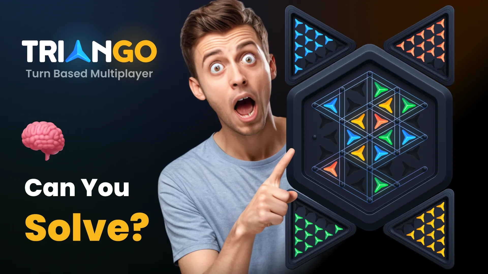 đ§ TrianGo Triangle Board Puzzle Challenge your mind in TrianGo Triangle Board Puzzle, the cleverly designed rubberâband puzzle game that brings the classic âcomplete a triangle to winâ triggle concept to Android. Strategically stretch virtual rubber bands, block opponents, and claim territory. In TrianGo, stretch bands, form triangles and collect tokens in a smart offline & online game for up to 4 players. Play TrianGo online with players from all over the world! ...