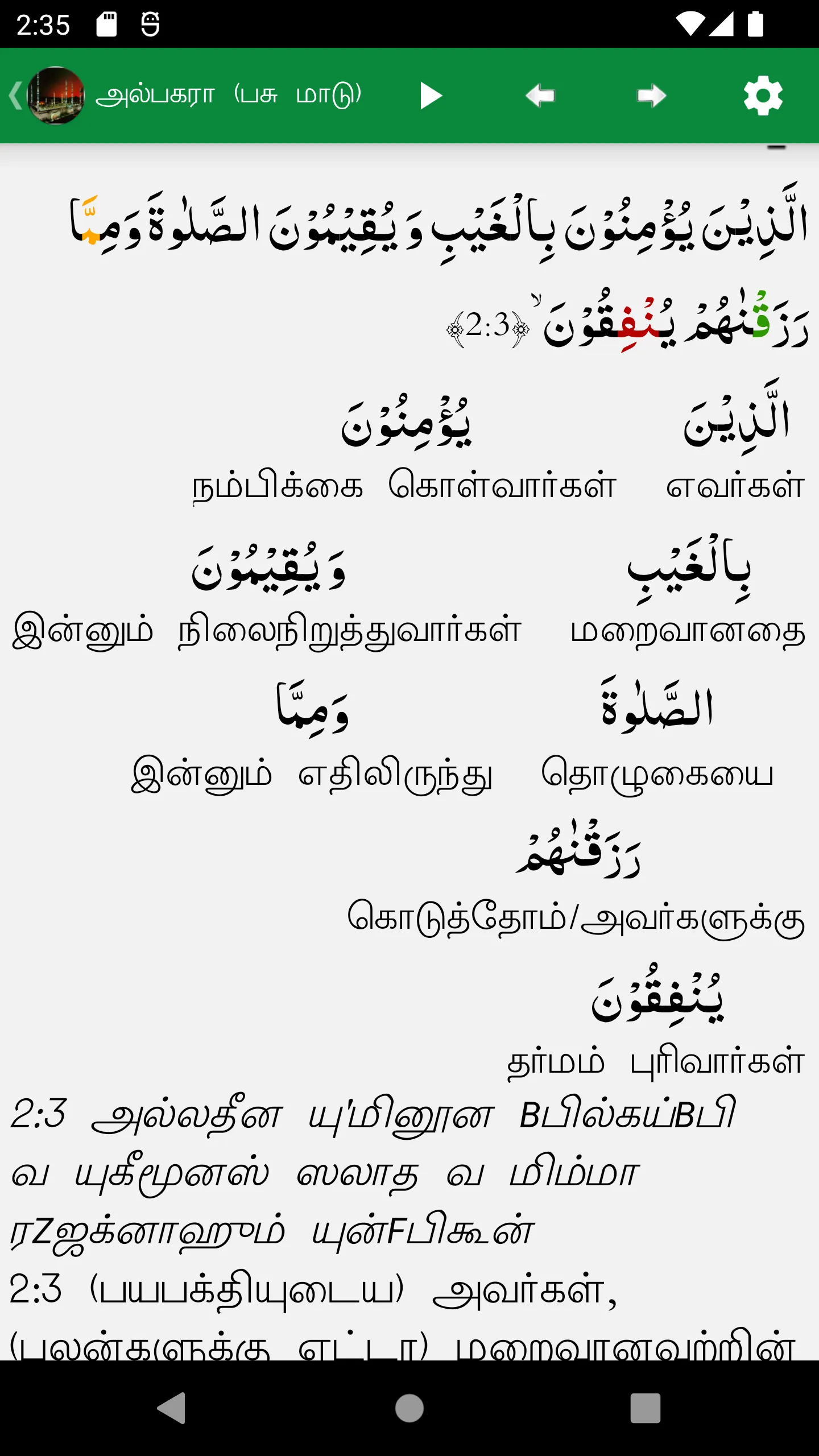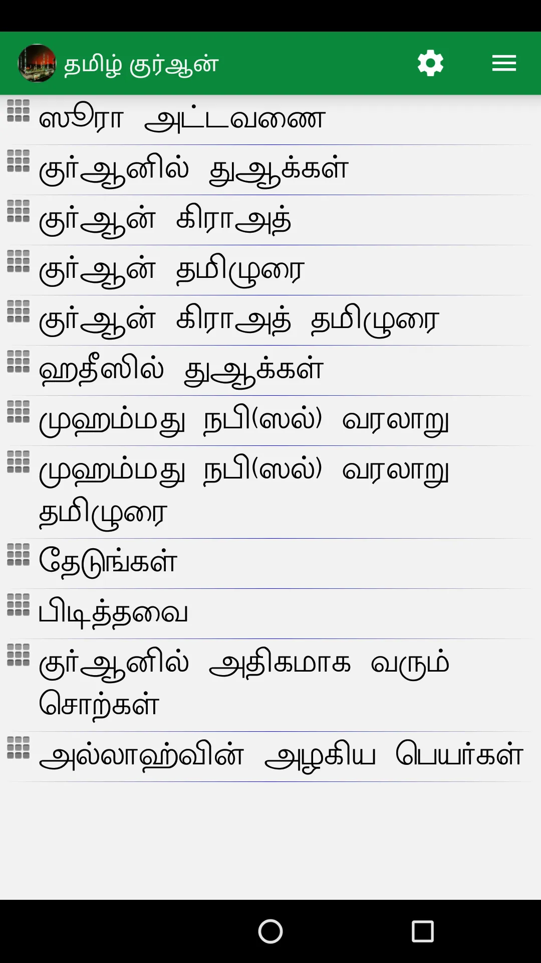 Tamil Translation of Quran. Read the meaning of Quran in Tamil language to understand Islam, Muslims, Prophet Muhammed (PBUH) It has the following features 1. Indo-Pak and Uthmani Scripts of Quran 2. Four Quran Tamil Translations and one English Translation...