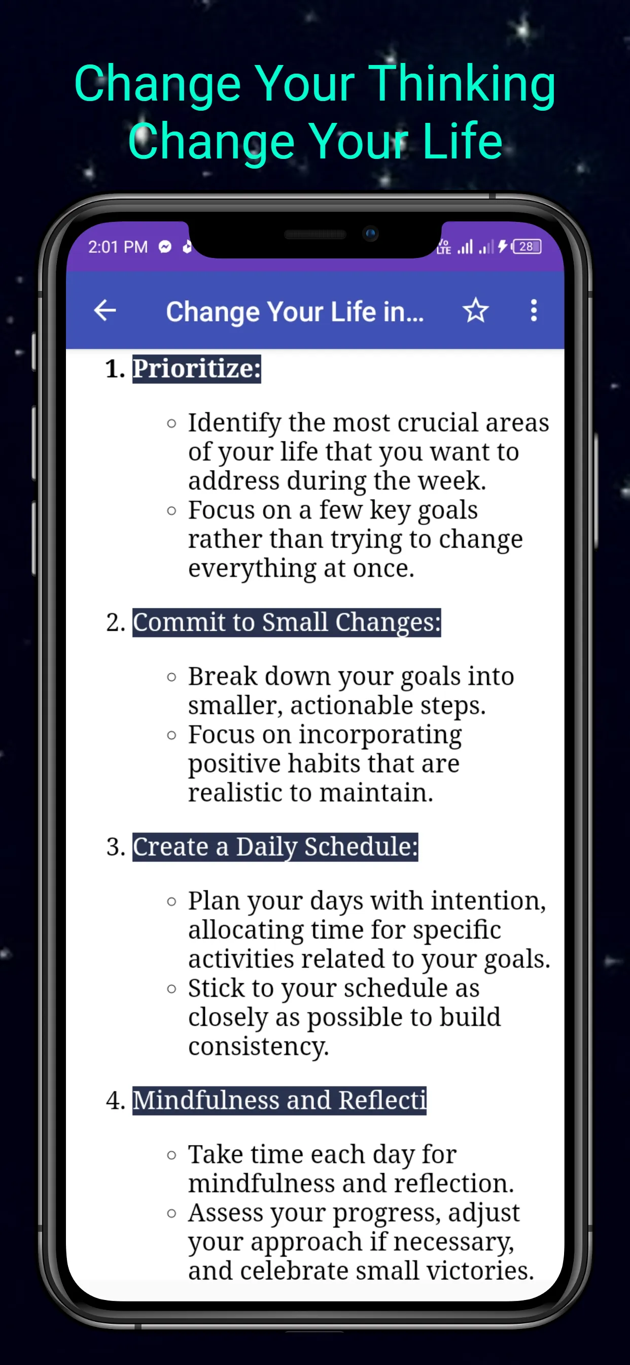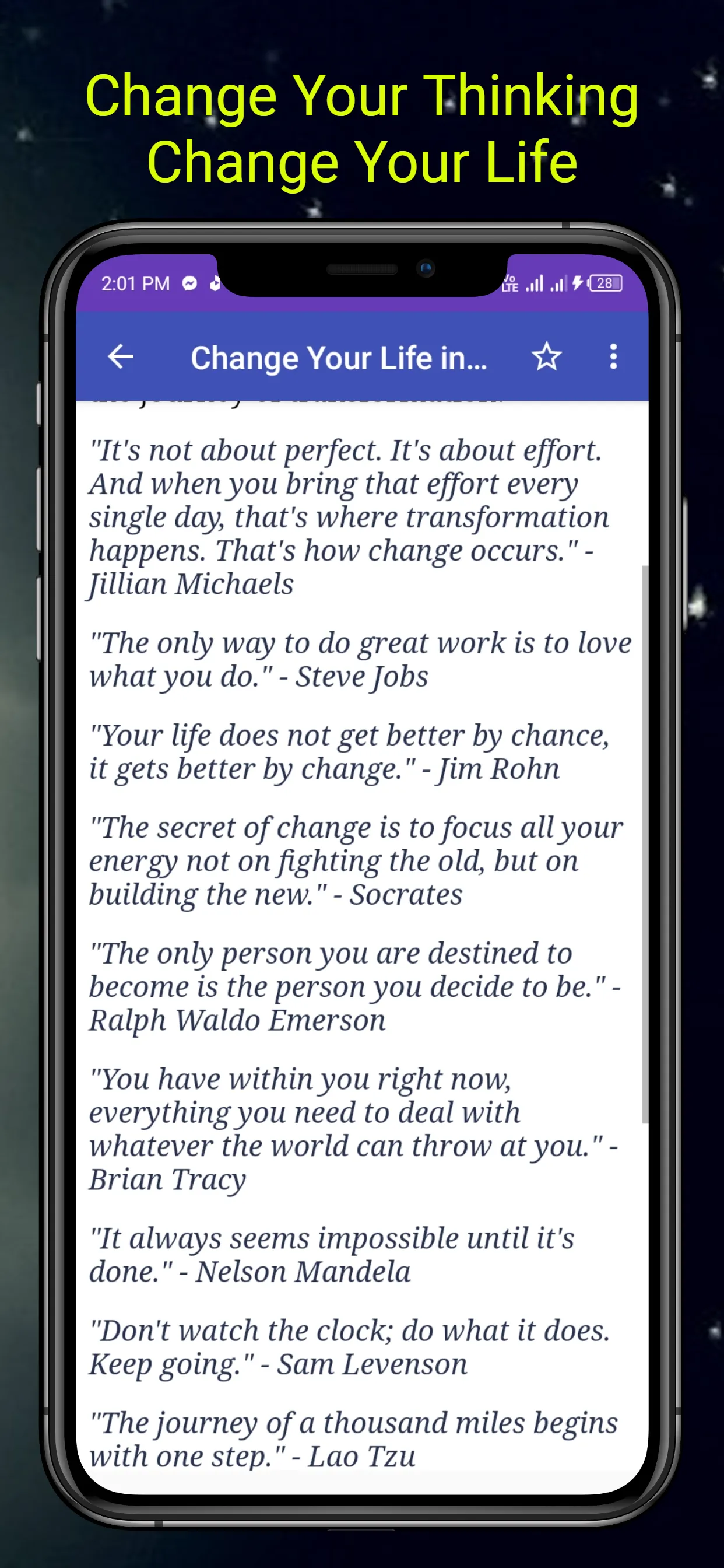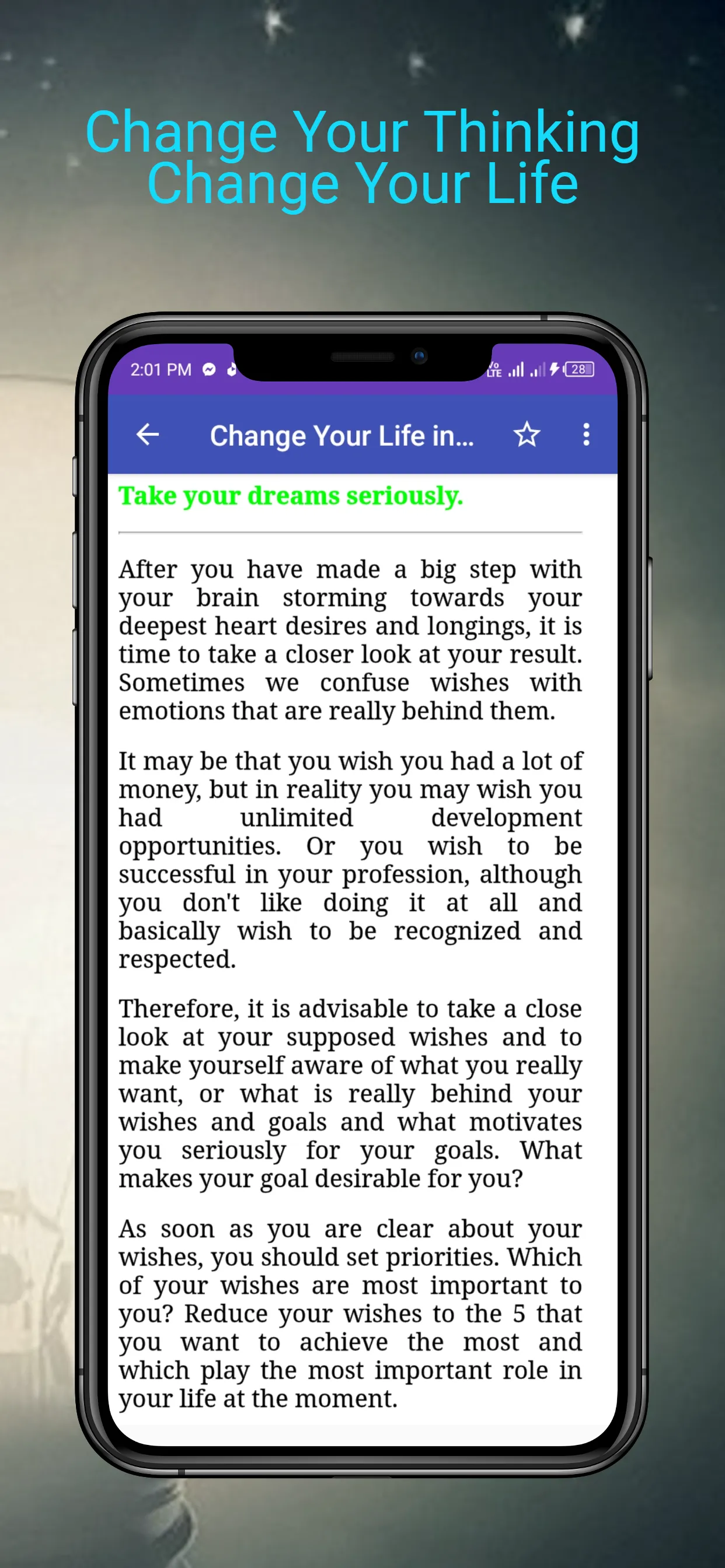 As a human, we want to be a successful people but we are not proper guidelines to become a successful people. For this reason, we made this Change Your Life in a Week app so that you become a successful person and think as successful people think. If we become successful people then firstly, we must set up a goal and change our thinking. This app is goal setter app, aim assist app, daily goal planner app, financial goal planner personal goal planner study goals planner weekly goal planner yearly goal planner, and so on. So, for this reason, this changes your thinking and change your life app reaches your last destination of success. Most apps like change your thinking change your life free books app, change your thinking book app and how to change your thinking app are a goal planner app but there are no proper guidelines for you because there have a lake of idea and lake of information added. So, I hope this Change Your Life in a Week app helps you in many ways because it is not only a goal setting app but also it is a success journal. For this reason, you should be using this app for your help. Change Your Life in a Week teaches you how to change your mind and build a strong mindset in a short time that becomes the power of your mind. There is no lake in this apps and added proper guidelines about Change Your Life in a Week so, you must keep these successful thinking strategies app and change your life very short time. ...