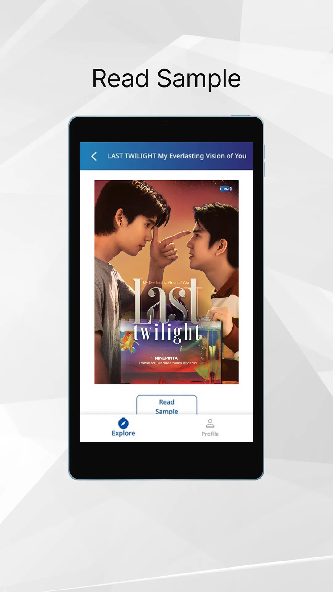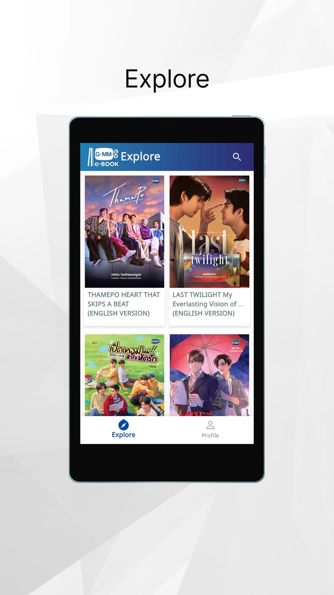 GMMTV e-BOOK, an online novel reading application that includes your favorite novels. Read anytime, anywhere in e-book format, available for download on smartphones and tablets. No matter where you are… you'll enjoy every story. An online ebook application that brings together all your favorite novels. Now you can read anytime, anywhere with the GMMTV e-BOOK app, available for download on your smartphone or tablet. Wherever you are… you can dive into the story and feel all the feelings. Features:...