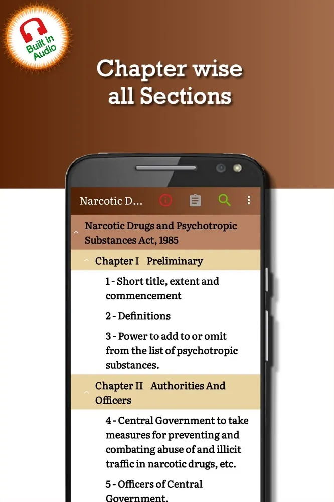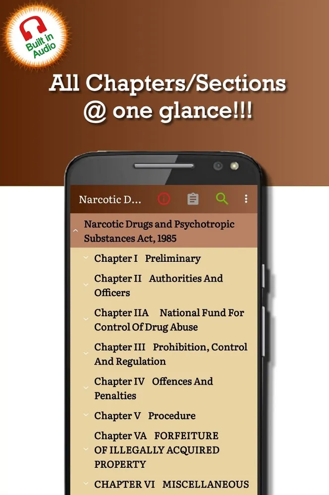 ‘NDPS Act - Narcotic Drugs Act 1985’ is the Best Narcotic Drugs and Psychotropic Substances Act, learning App with latest Amendments. It is a free and offline app providing detail Section-wise and Chapter-wise Legal Information of NDPS Act of India. The Narcotic Drugs and Psychotropic Substances Act, 1985, commonly referred to as the NDPS Act, is an Act of the Parliament of India that prohibits a person the production /manufacturing /cultivation, possession, sale, purchasing, transport, storage, and/or consumption of any narcotic drug or psychotropic substance. This ‘NDPS Act - Narcotic Drugs Act 1985' app is a user friendly app that provides the entire Narcotic Drugs and Psychotropic Substances Act 1985 including all legal procedures, schedules and amendments as notified by Government of India. It’s like whole Narcotic Drugs and Psychotropic Substances Act or NDPS Act in your own device. It is precise n Clear....