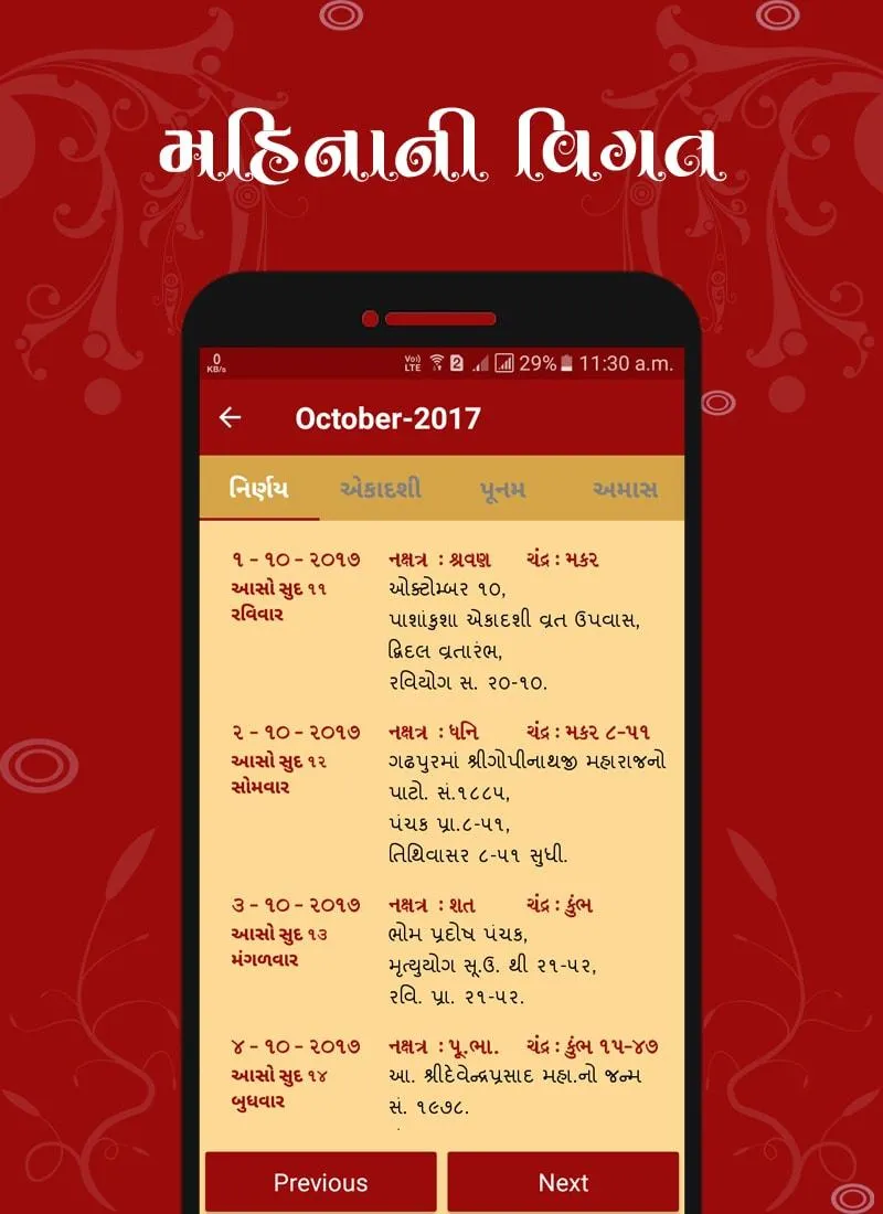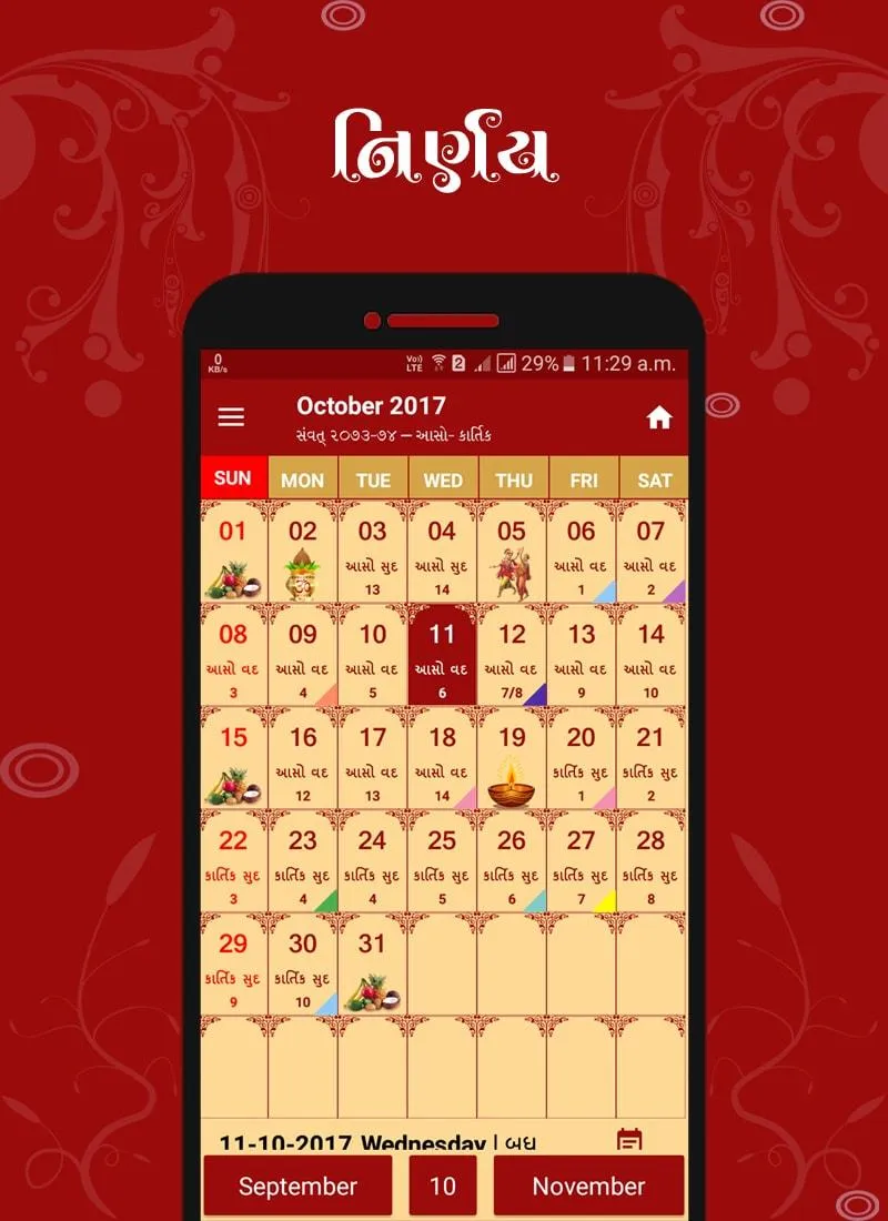 Nirnay, Gujarati Calendar 2024 A simple Gujarati (Hindu) calendar with the traditional print copy look and feel but with the added benefit of user interaction to find more details about a specific date. The calendar will help you to find when the next Ekadashi is, what the Paksha (Sud,Vad) on a particular day is, when the next Poonam is (Full Moon) or the next Amavasya is and many more Hindu events in easy visual representations; due to images being used to represent key events, even a person who cannot read Gujarati is able to use the app. In Vedic timekeeping, a tithi is a lunar day, or the time it takes for the longitudinal angle between the Moon and the Sun to increase by 12°. Tithis begin at varying times of the day and vary in duration from approximately 19 to approximately 26 hours. Tithi therefore is one of the most important aspect of the Indian Almanac or the Panchang as Hindu festivals and ceremonies are calculated based on this. The Hindu Calendar system is based upon the motion of the moon, each lunar year comprises of twelve months, each lunar year comprises of 354 days. This in comparison to the usual Georgian (English) calendar that we all use, leads to a difference in the number of days as the Georgian year consists of 365 ¼ days since it is based on the solar (Sun) system. To align the solar year with the lunar year, an additional month is added to the Hindu calendar every 3 years, this additional month is called Adhik Maas (Additional/Extra Month). Each and every second in vedic timekeeping is part of a Muhrat (moment), these can be auspicious or inauspicious depending on nakshatra and tithi (which are also auspicious and inauspicious)… sounds very complicated? It is complicated for most of us; thankfully we have this Nirnay Android App which combines the lunar and solar calendar into an easy to understand format so that we can easily find out when we should celebrate Hindu festivals, when the most auspicious times are for various religious (and non-religious) activities so that we do things at a Muhrat which is good ...