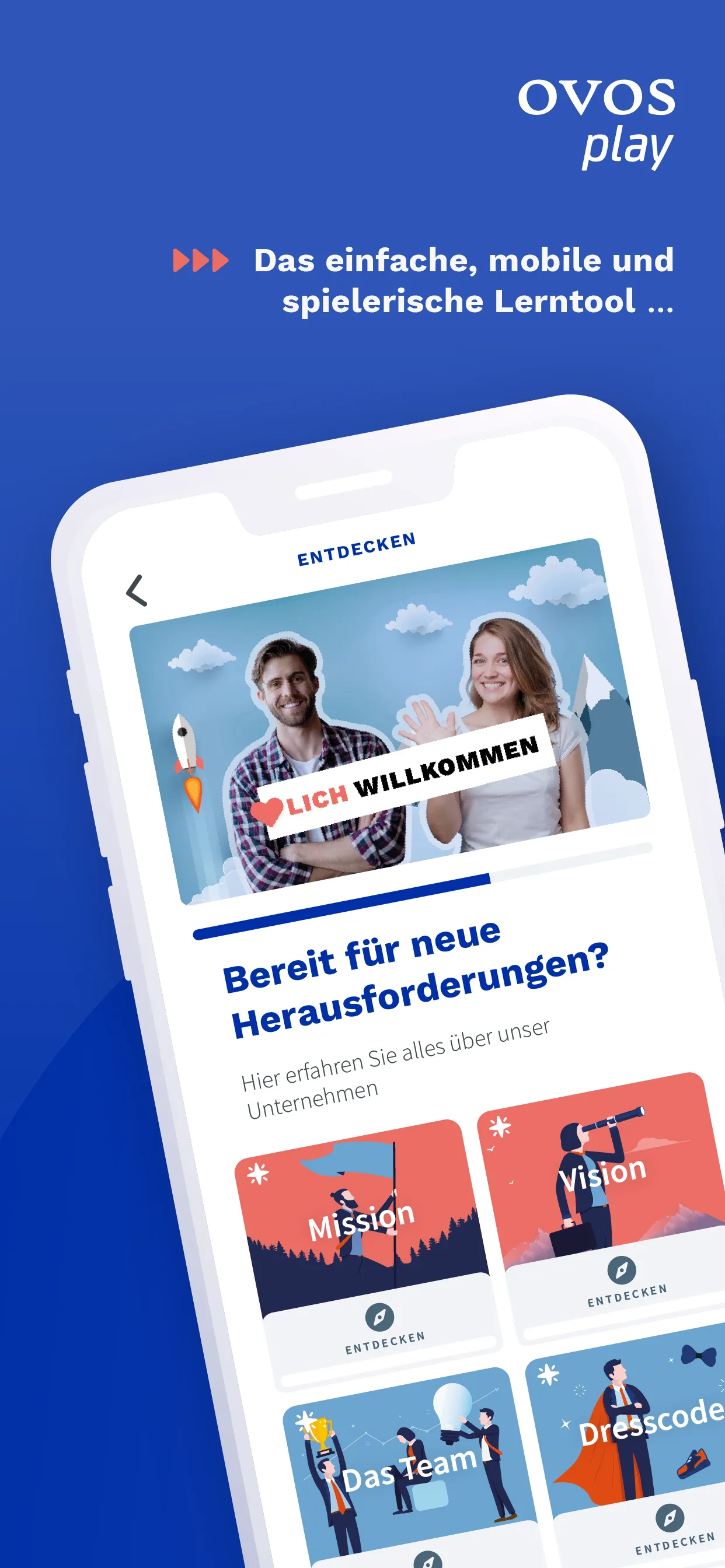 Appealing and interactive learning units (microtraining) are displayed on a variety of flashcards (text, image, video, 3D, VR, scene, dialogue, tasks and decisions) and continuously reviewed by a multiplayer quiz duel. Learned knowledge will be consolidated in the long term. Forget about less: Learning Analytics enables intelligent assessment. The interval-based learning method helps the brain to solidify content. Social and playful learning mechanisms ensure lasting high motivation.