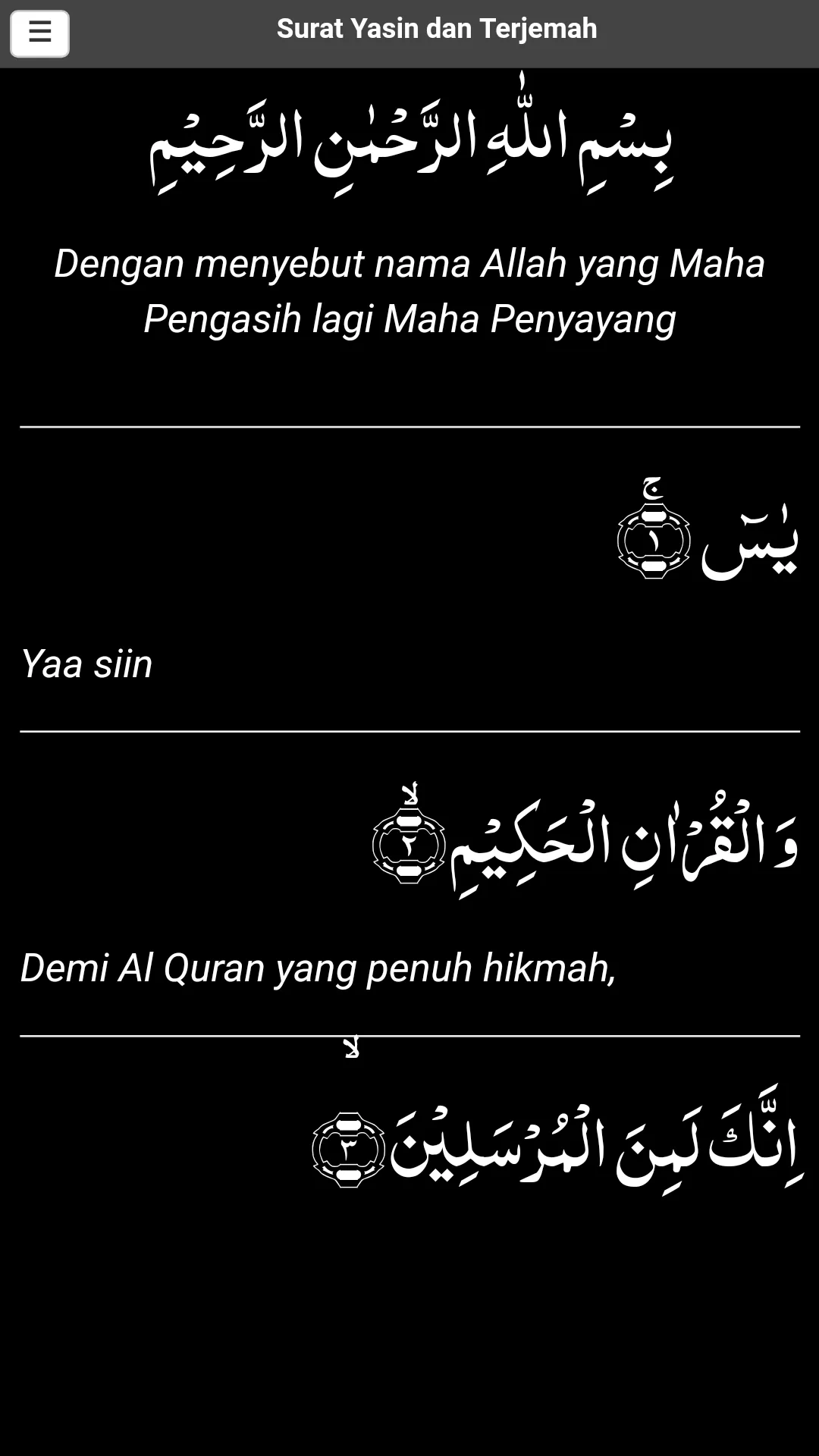 Surat Yasin dan Terjemahan Indonesia - Bisa pilih tema terang atau gelap - Bisa ubah ukuran huruf - Bisa pilih tampilkan arab saja, latin atau terjemah