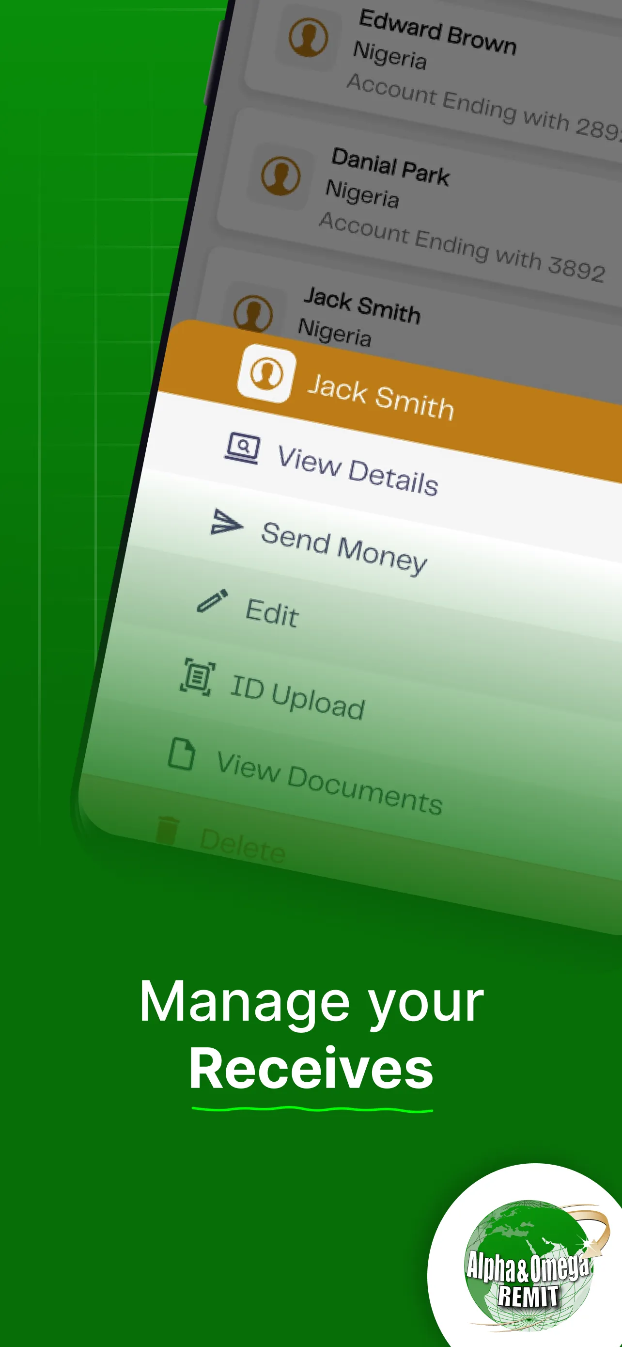 Alpha & Omega is a leading money transfer company in United Kingdom to offer a true online money transfer service to all destinations in Nigeria. We offer Cash Pickup and Bank Deposit services to any bank account in Nigeria. We accept online remittances from all over the country. Now, you can send money to your family and friends quickly, easily and securely through this app. See for yourself how easy it is to sign up with us. You can use our easy-to-use money transfer mobile app to transfer money swiftly and securely. For feedback and any questions, please contact us at: ...