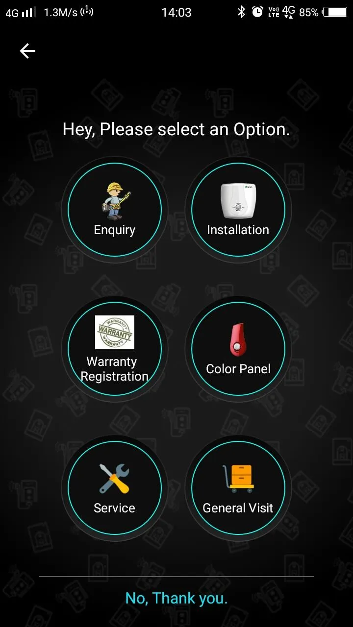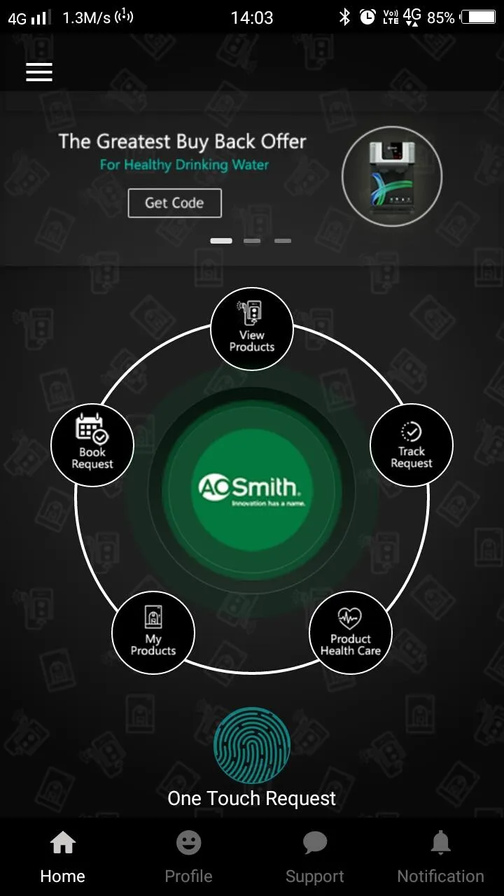 One touch request, Product information, Product registration, GPS tracking, Purchases and live chats