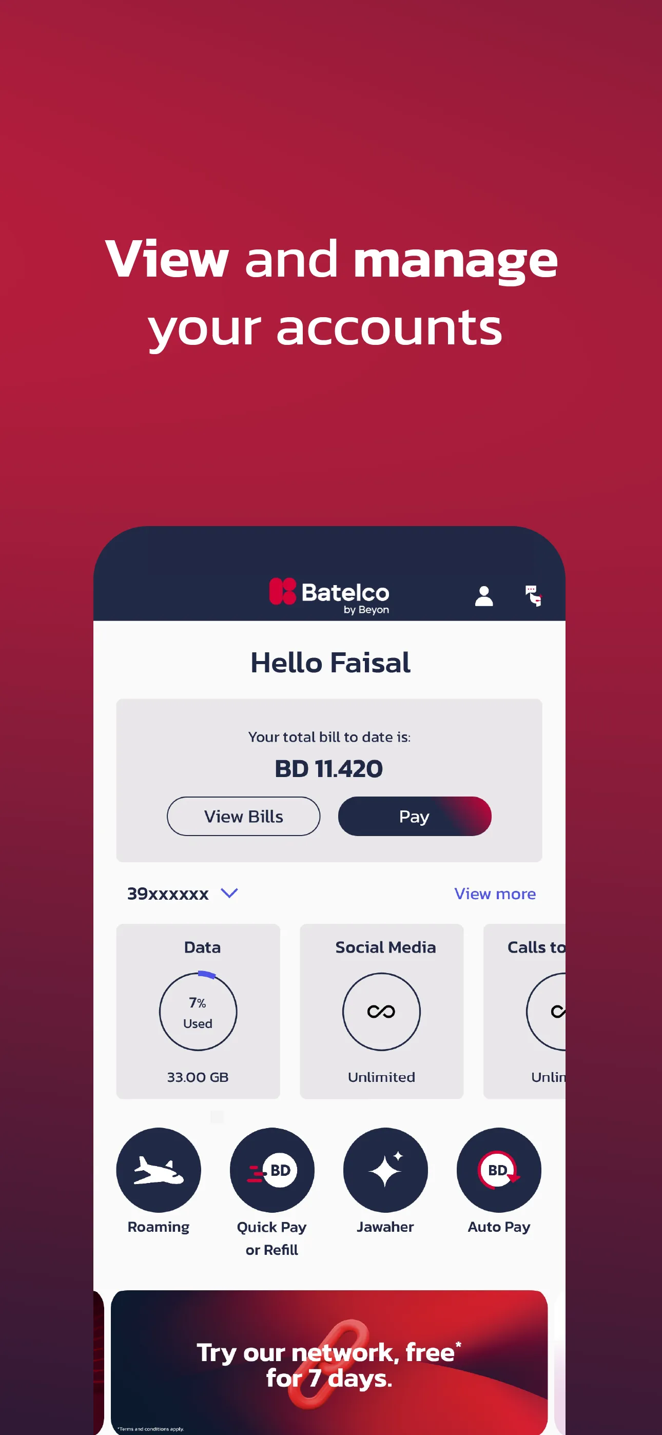 Experience the future of connectivity with Batelco, the fastest and easiest way to activate a new line and manage your plans! Features of the Batelco App: Chat with Basma, your Ai Digital Assistant Activate a new line Renew or upgrade your plan Pay your bills to earn Jawaher points Refill your Prepaid number Access Prepaid Rewards Book your Fiber installation appointment Shop the latest devices View and manage your usage & so much more! Batelco App, your simplicity at your fingertips.