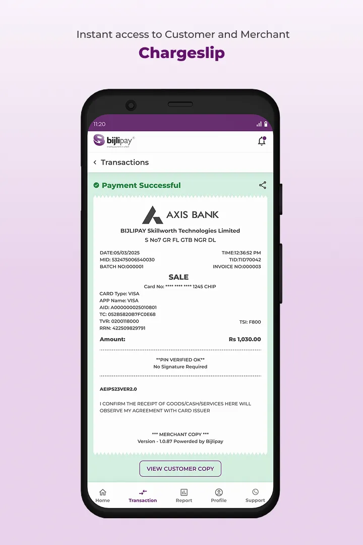 Presenting Bijlipay Vyapaar App, an application build by Bijlipay, an Omni-channel Digital payment solution company. Using the APP, Bijlipay POS customers can Raise Service Request, Accept Digital Payments, View MIS Reports and Get Offers/Notifications! And all this in a click of a button! Bijlipay POS merchants can use our Vyapaar App to enjoy the following functionalities: 1. Track your transactions - Merchants can view the Transaction Reports, which provides details of transactions and their status on the Bijlipay Vyapaar App ...