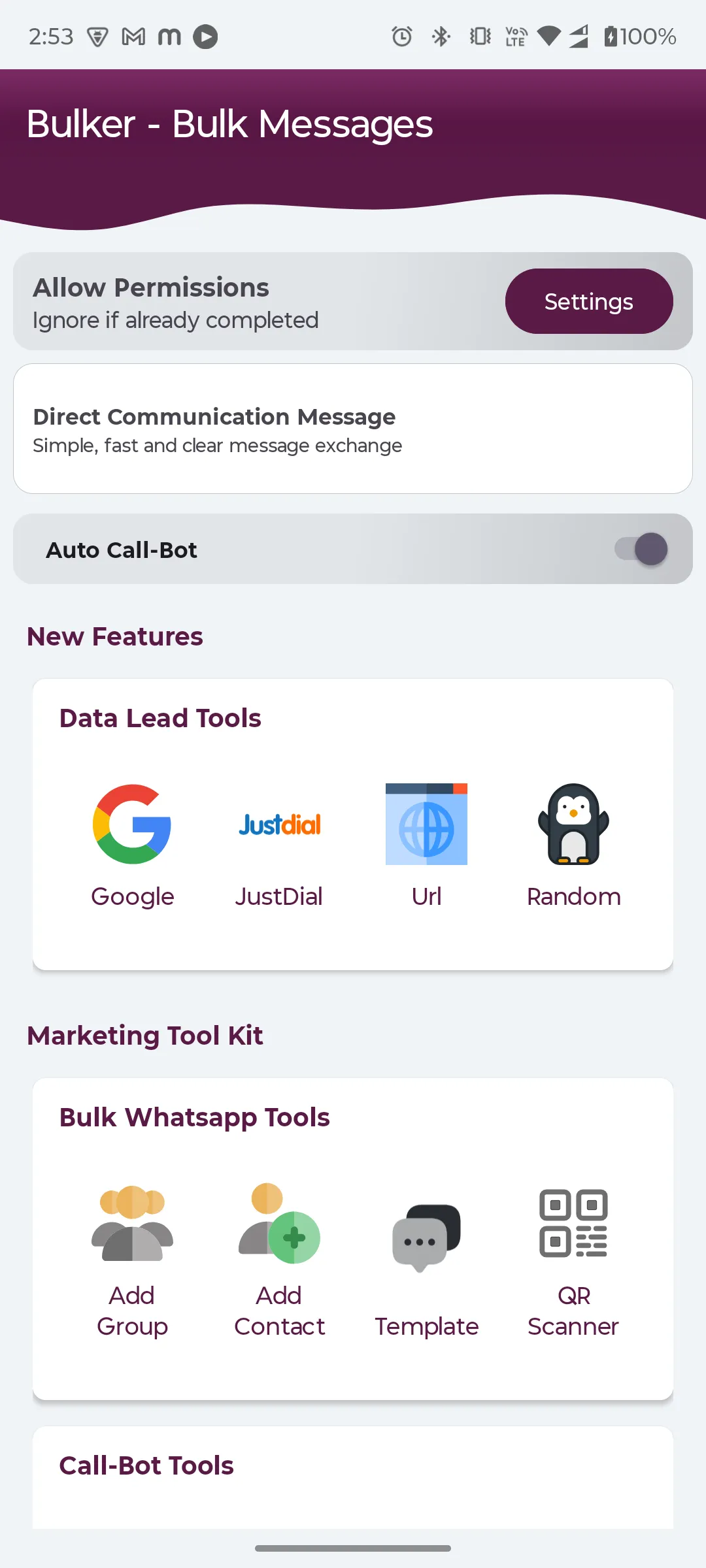 This application is best for marketing and grow your business by generated leads and bulk massaging.