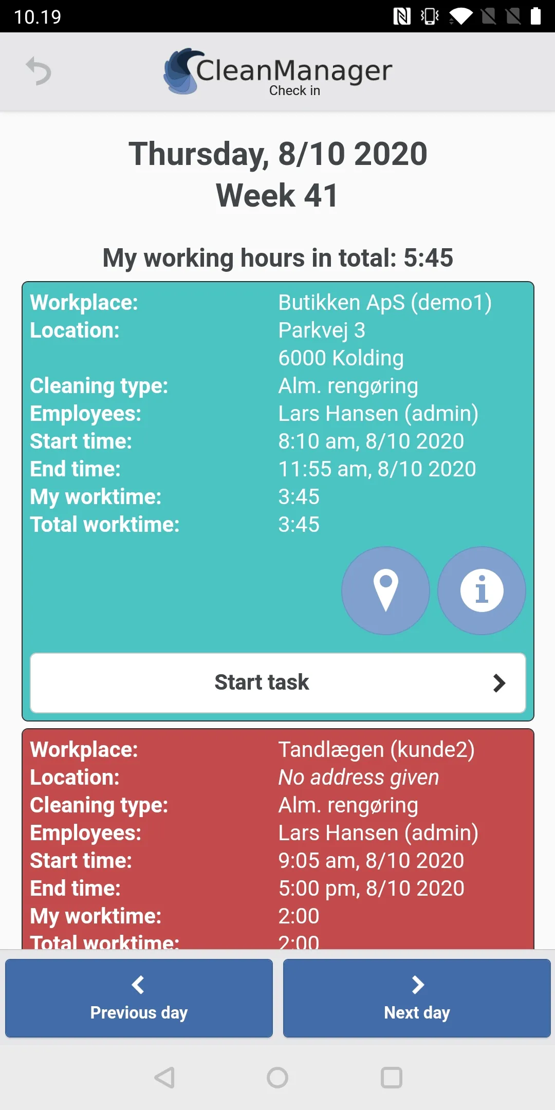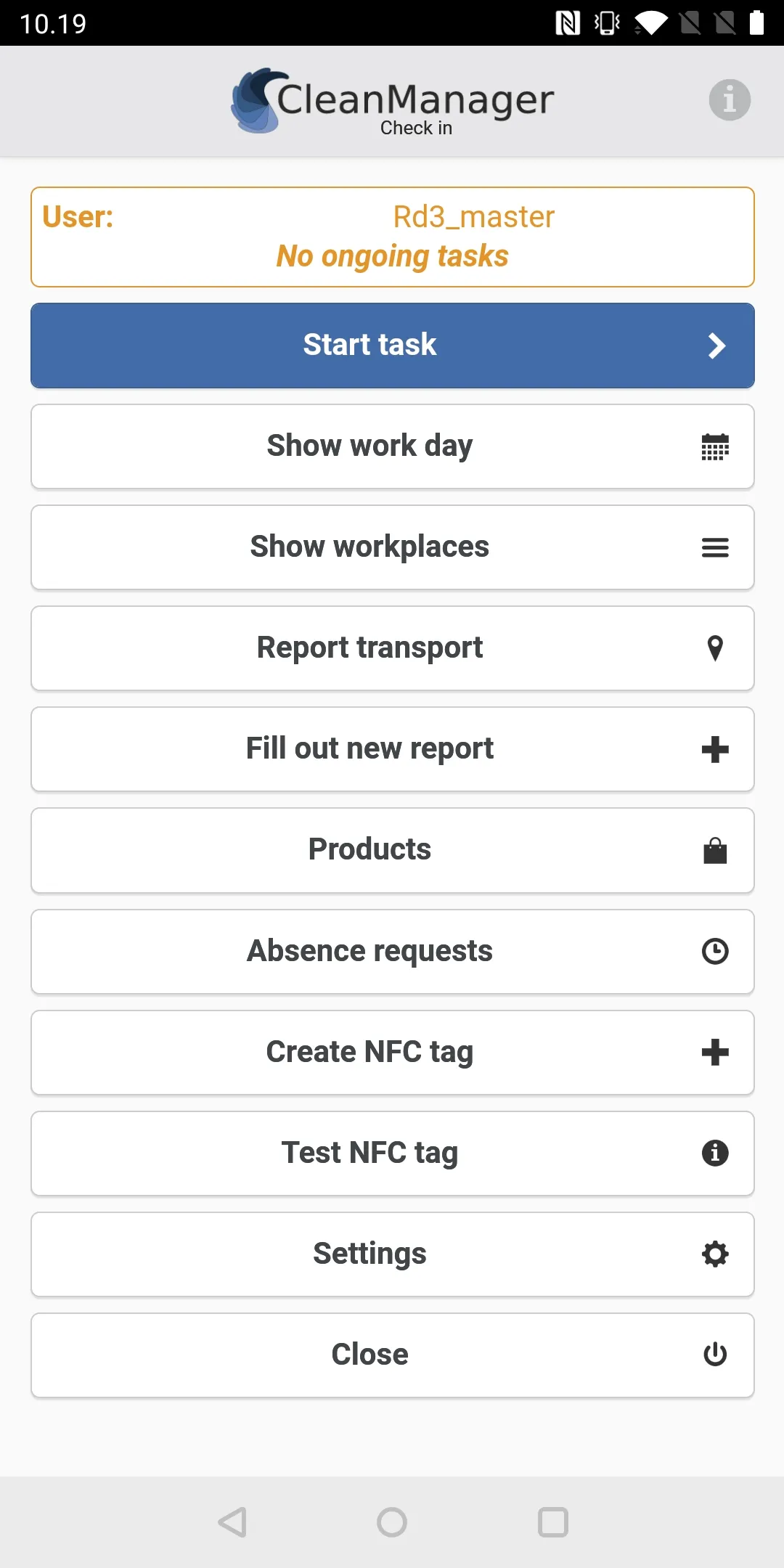 Description: CleanManager Check-in app: By using the CleanManager app, your cleaning company’s administrator can create and configure NFC tags at the workplaces and then the cleaning employees can check in and out of their cleaning tasks when they start and finish their tasks for the customer. You can use the app without NFC technology but then you will not have a 100 % guarantee that your employee met up in person at the given workplace. Your employees and inspectors can also fill out reports, request absence, order cleaning products to the various workplaces through the app as well as attach photos as documentation for ongoing tasks. ...