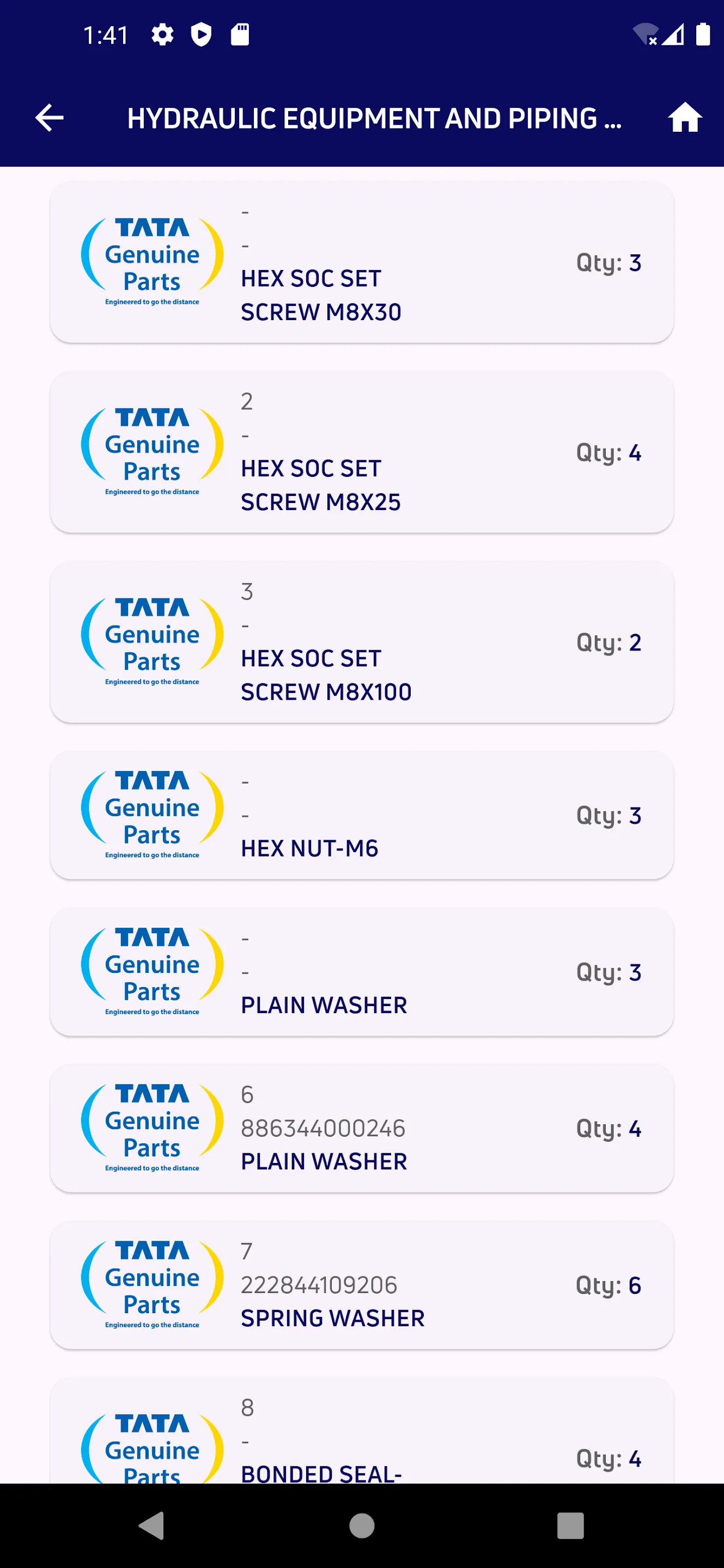 Tata Motors Ltd, Commercial Vehicle Division has embarked on the journey for Digital enablement of its "CHANNEL PARTNERS & RETAILERS". This mobile application is a step forward towards this goal. eCATS will support following features: • Provide Tata Genuine Catalogue Search by VIN No, Chassis Type , Part No, Registration number • Display image of the part for better accuracy & identification • Help identify part applicability against the model • Help identify alternate / interchangeable parts • Display Tata Genuine Spare Parts availability at nearby channel partners on map...