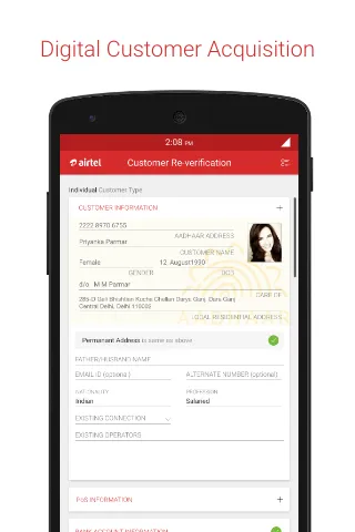 It is a Digital solution for on boarding customers on Airtel prepaid and postpaid mobile connections. This is the Test version and the usage is restricted.
