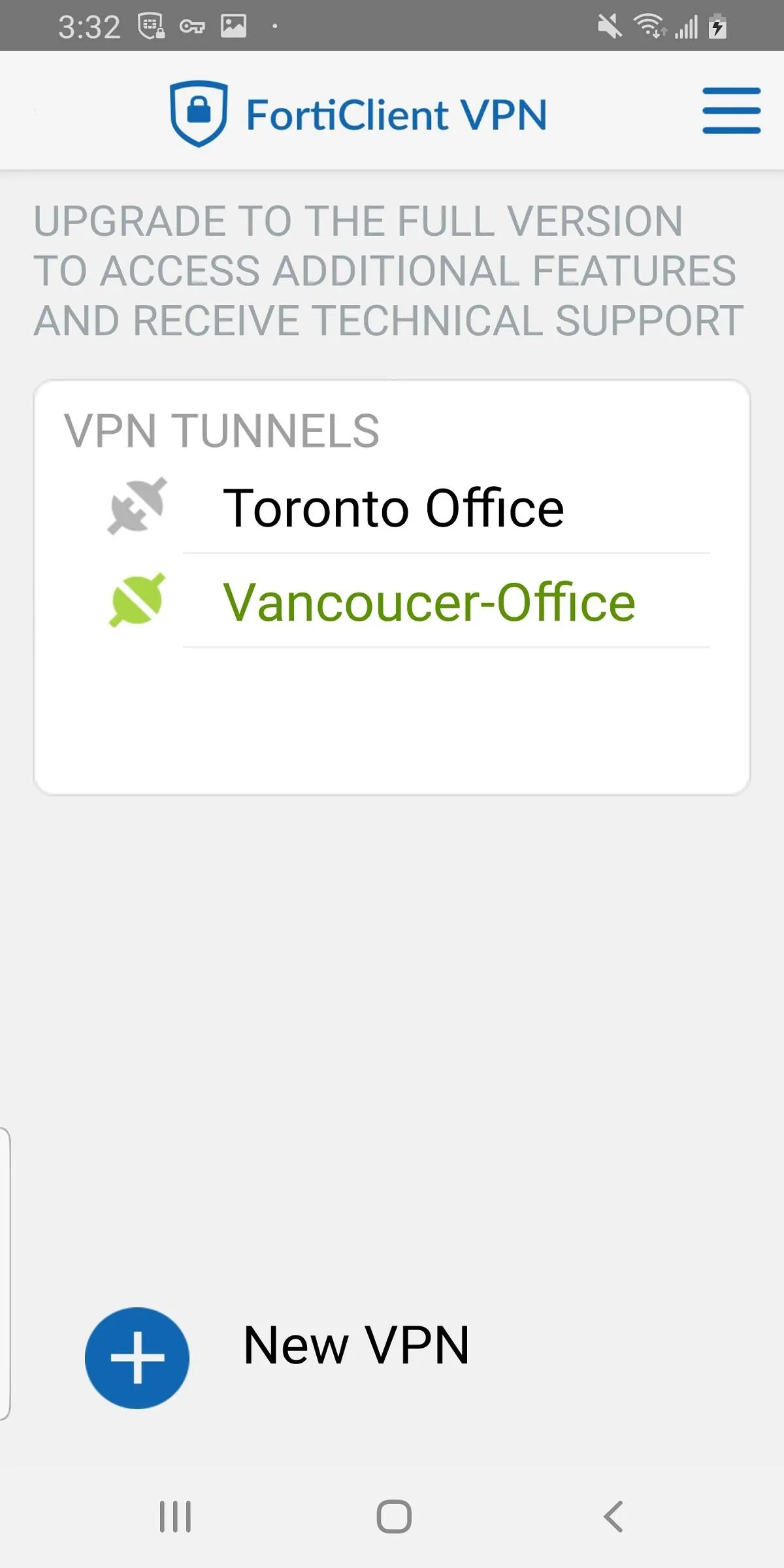 This Free FortiClient VPN App allows you to create a secure Virtual Private Network (VPN) connection using IPSec or SSL VPN "Tunnel Mode" connections between your Android device and FortiGate Firewall. Your connection will be fully encrypted and all traffic will be sent over the secure tunnel. This easy to use app supports both SSL and IPSec VPN with FortiToken support. The VPN features included in this free app are limited so upgrade to FortiClient - Fabric Agent for advanced functionality and technical support. Supported Features ...