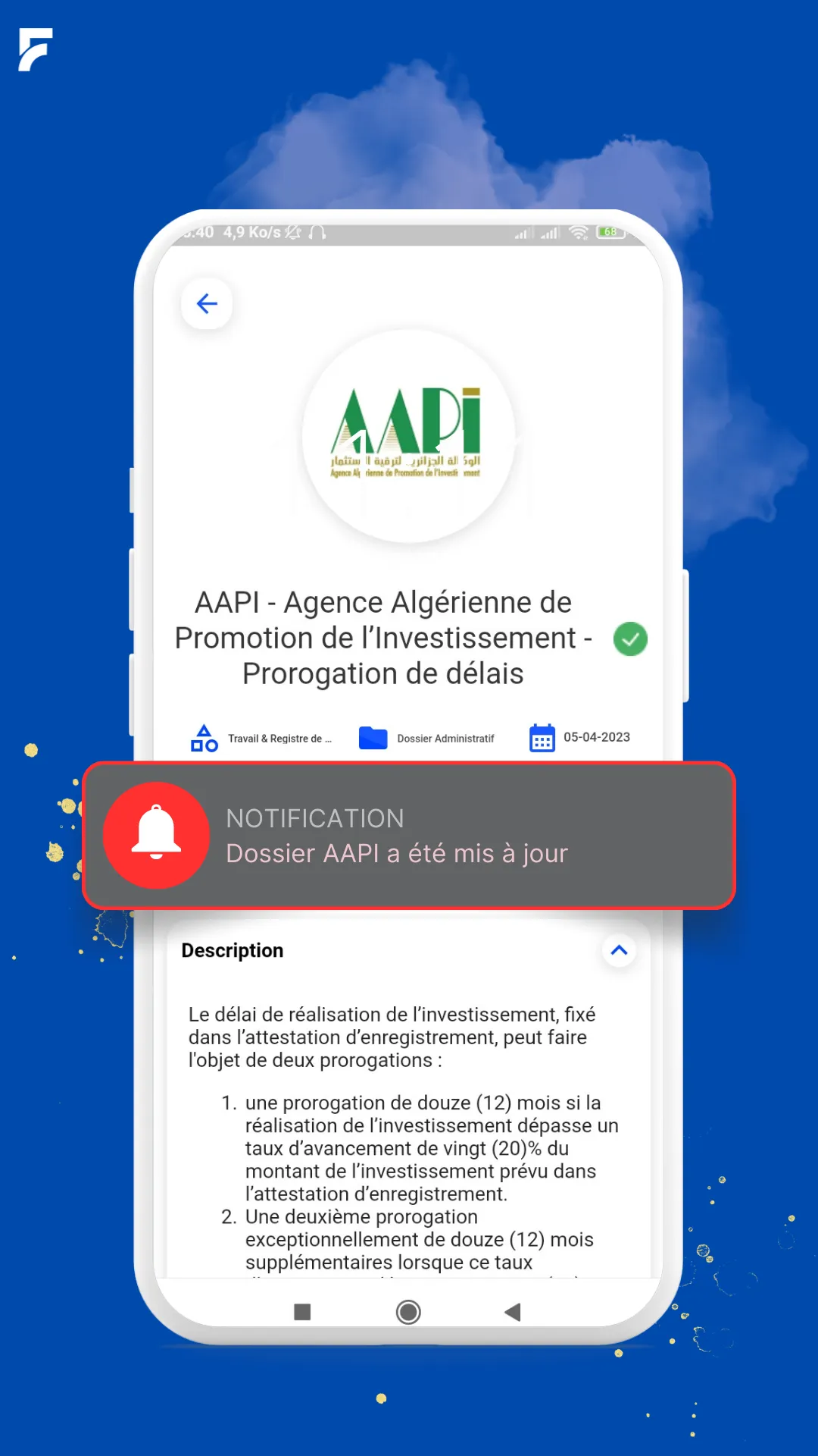 Fridoc is a non-governmental, innovative mobile application which aims to facilitate access to administrative information in Algeria. This application brings together all the documents to be provided for the various administrative, technical and legal files existing in Algeria on a single platform. Whether it is to renew your driving license, apply for a visa or for any other file, Fridoc provides you with all the necessary documents to facilitate your administrative procedures. Our Terms of Se...