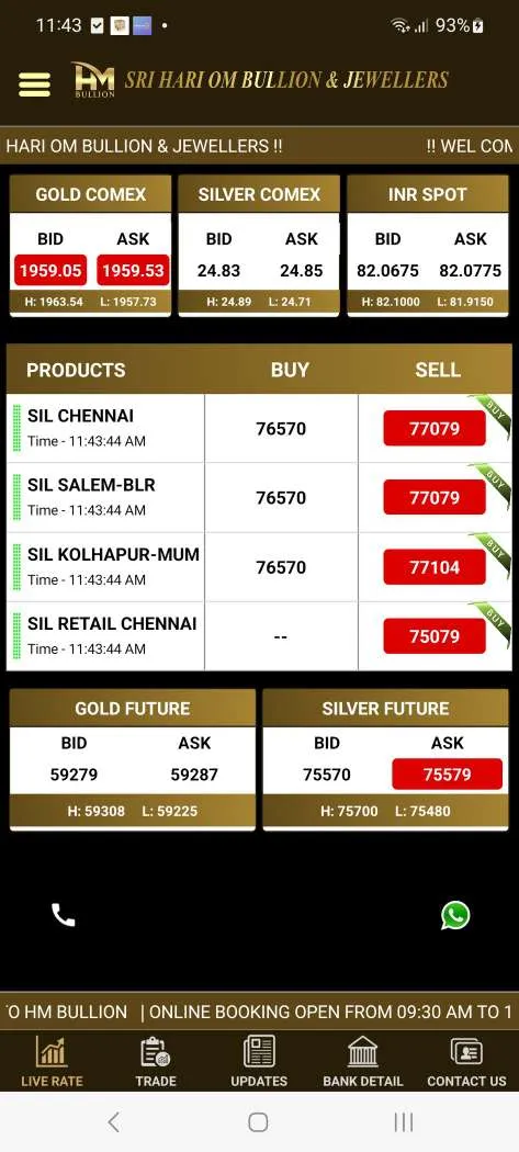 H M Bullion has set a different benchmark in the Bullion market of precious metals such as gold and silver in the historical gold city Chennai. The bullion company is very trusted to deal with and depicts itself as a service brand to the customers which is open for all. Providing their valuable services and winning customers satisfaction in Bullion Deals since so many years and reflects a valuable name in the market. Being the major bullion in the city by setting standards of providing valuable services to the customers. Features: * Gold & Silver * Markets Updates * Up to date Rate Display...