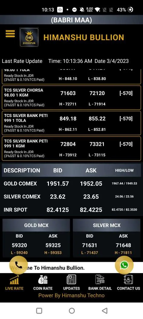Himanshu Bullion is one of the leading bullion dealers in Rajasthan located in the heart of the Jodhpur city. Himanshu Bullion prides itself on excellence of service and products: the bars and coins we supply and manufacture are of the finest quality. We are one of the few bullion dealers to supply physical bullion from a single bar to very large quantities, at some of the most competitive prices. Himanshu Bullion is headed by highly experienced and professional gold dealers. It provides a hass...