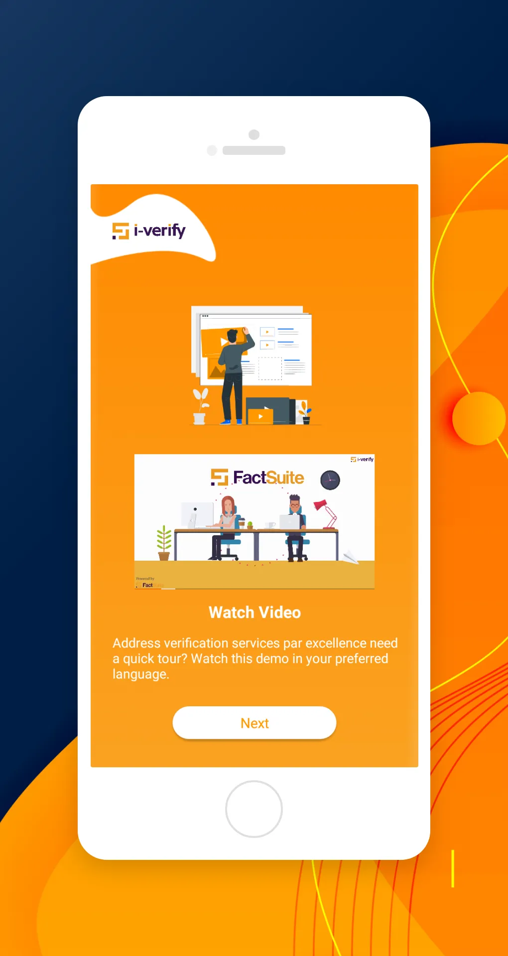iVerify is a verification app custom developed by FactSuite to authenticate the address details of users for the purpose of Employment Background Verification. The iVerify app is a Trademark application of FactSuite, a Background Screening company which provides Employment Screening services to its clients. This application is designed for the sole purpose of authenticating the address information submitted by a candidate during the onboarding process into their new role in a company. The FS iVerify app is designed to collect the GPS co-ordinates, photos/videos, and other personal information of the candidate’s location, critical to their new job. This in turn helps us to validate the required parameters of the complete background screening process. iVerify helps the candidate screening process move away from the clunky & dated process of having to endure a physical visit from unknown individuals and their subsequent enquiries on the property information of the candidate. ...