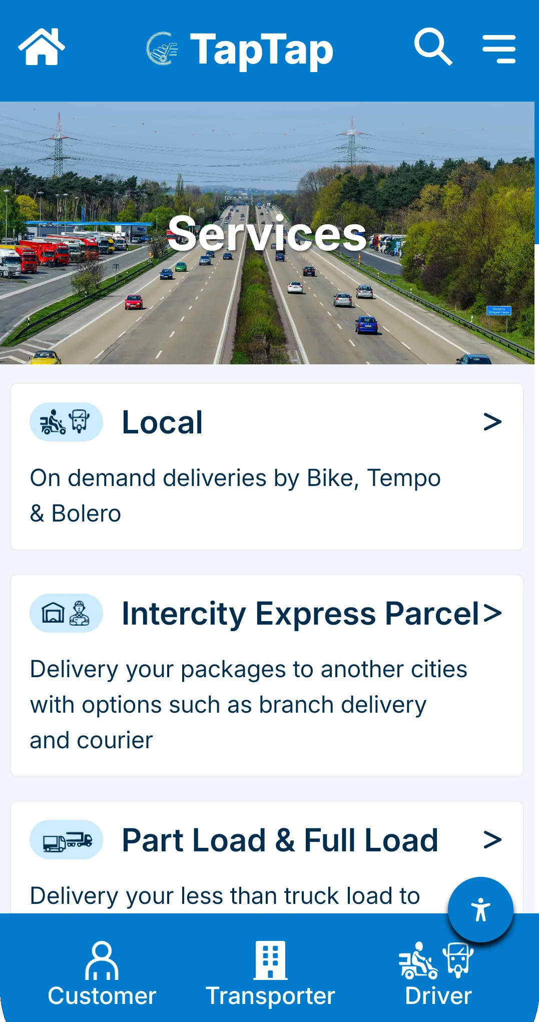 TapTap is providing transportation service across india over 25 cities in 4 states having more then 60 branches.