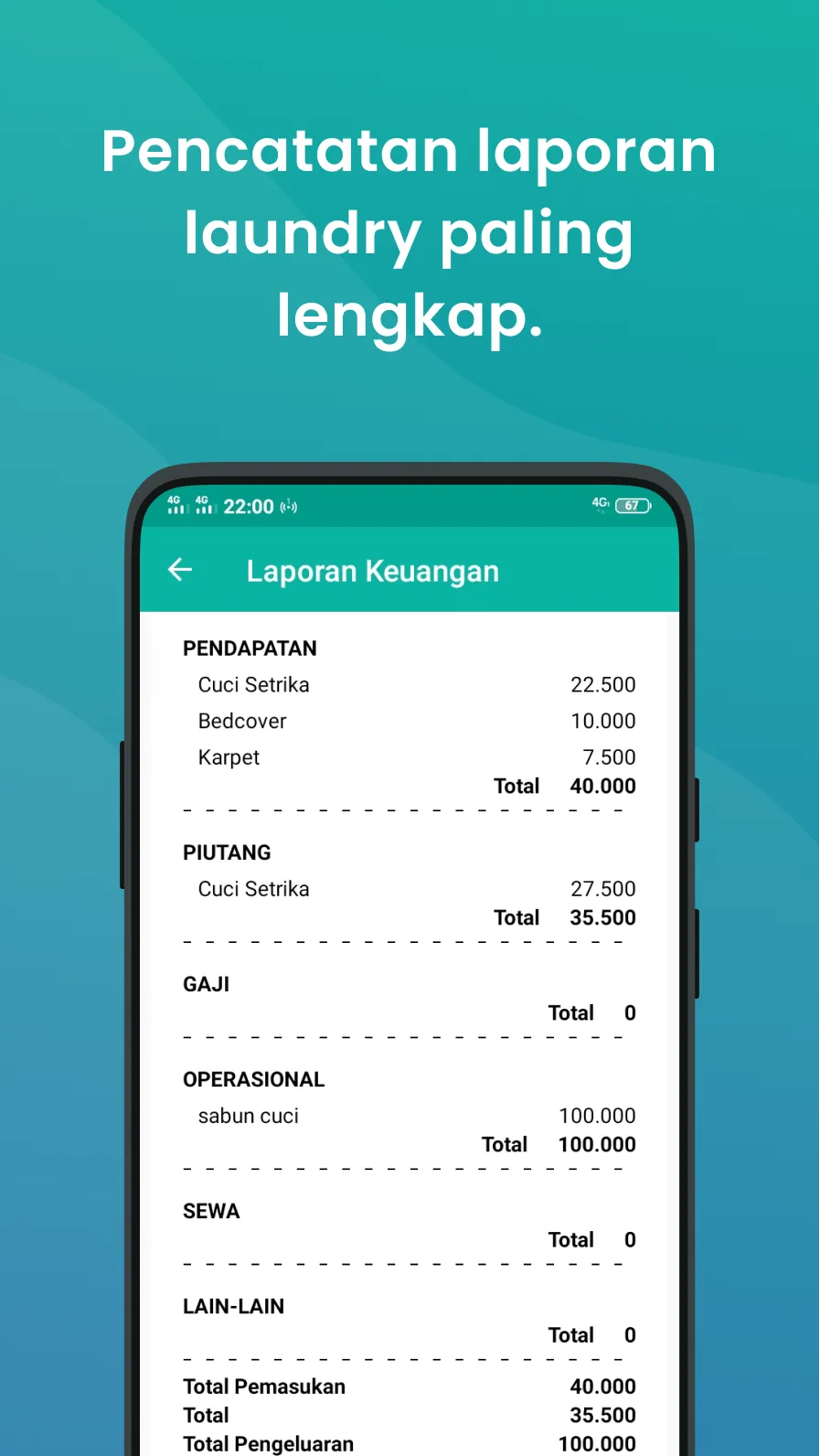 ------------------------------------------------------------------------------------------------------------------------------------------------ “Saya capek hitung pendapatan dengan cara manual setiap hari” “Saya punya banyak kios laundry, tapi bingung ngontrolnya karena harus nanya-nanya secara manual ke karyawan Saya” “Saya mau pakai aplikasi untuk menjalankan usaha laundry saya, tapi karyawan saya masih kebingungan kalau sudah berurusan dengan teknologi” “Saya kebingungan dalam mengontrol nota-nota di kios laundry saya, sehingga banyak cucian yang kadang-kadang hilang, sehingga sering dimarahi pelanggan saya” ...