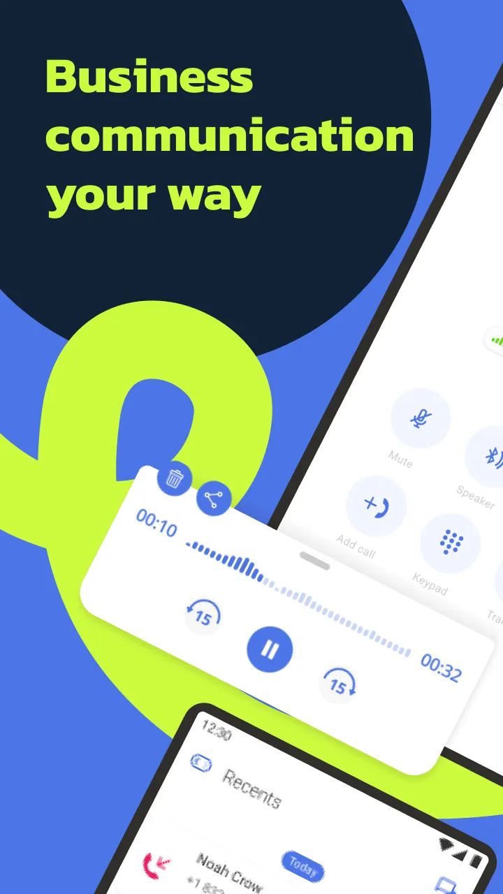 Set up your call center: get local, toll-free, or domestic business numbers, and effortlessly manage your communication, while presenting a polished and credible image to your customers. MightyCall Center app will serve as your all-in-one solution for seamless communication and exceptional customer service. Stay connected with your team and customers from anywhere, while enjoying a crystal-clear audio quality, user-friendly interface, and an array of robust features, all specifically tailored for your business needs. With the MightyCall Call Center app, you can: - Make and receive calls using your business numbers...