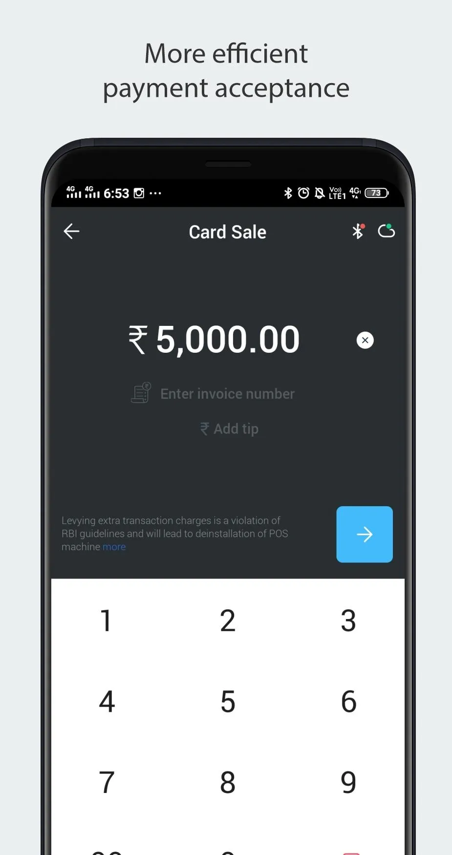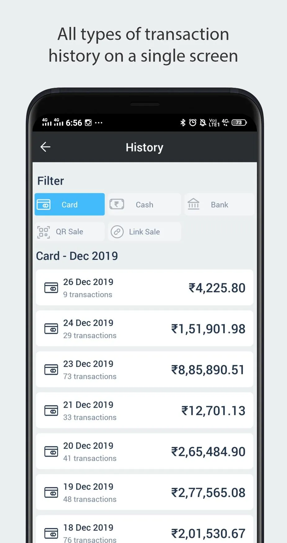 In-app notifications: Get quick notification for transactions, offers and support tickets. Dashboard: Stay up-to-date with transactions conducted on your terminal. 24x7 customer support: Get in touch any time via call, web / in-app messenger or email with support in 7 regional languages. ...