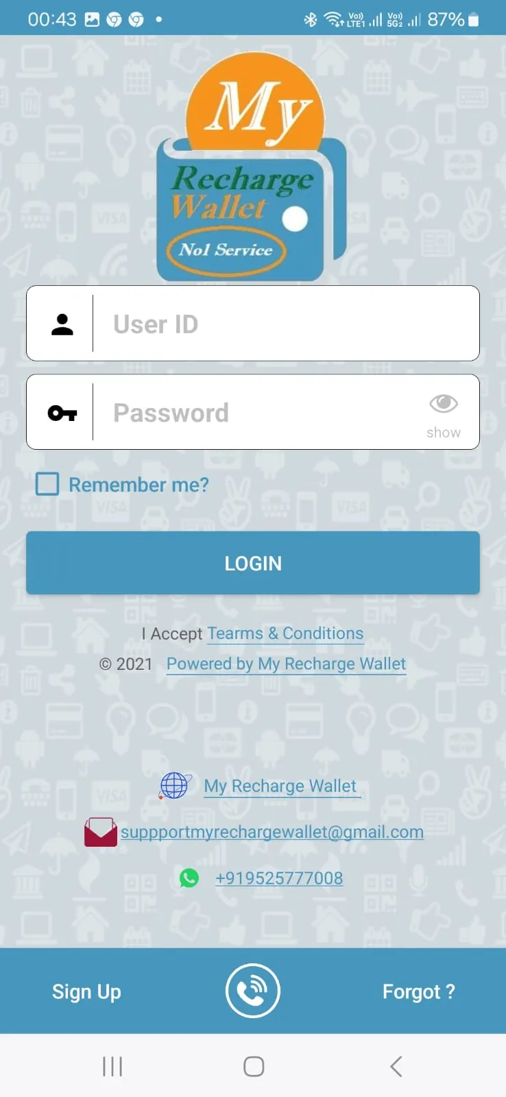 This Application is for My Recharge Wallet Users. if you want to become a user, Please register from the app and our Representative Contact you soon.My Recharge Wallet is a company specializes in Mobile, Data Card and DTH recharge technologies.My Recharge Wallet is India's first 24/7 recharge platform that provides recharge facilities of all the telecom service providers, Data Card and DTH operators through the Internet and Mobile channels. It is amongst the Top three privately owned, operator i...