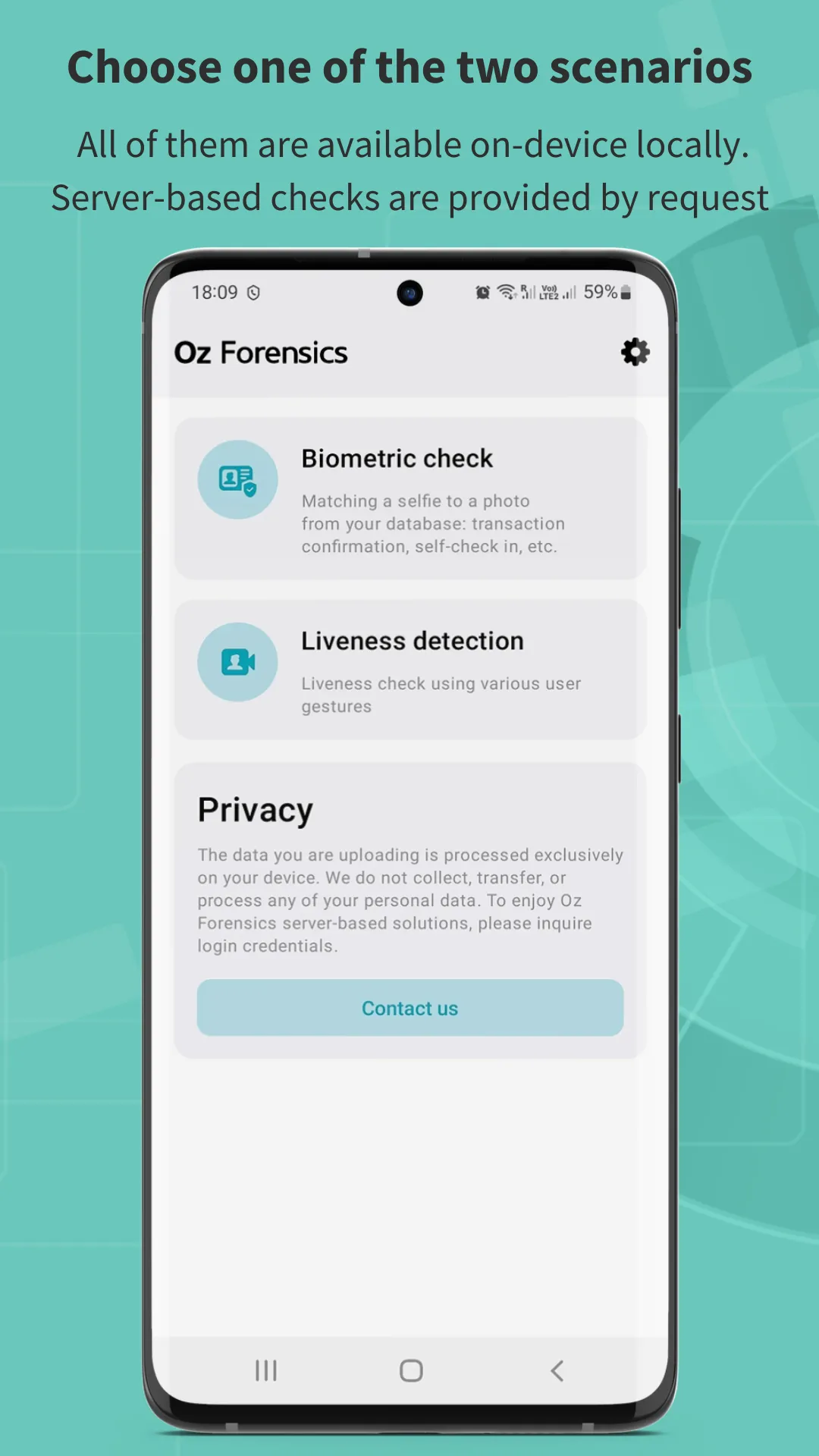Oz Liveness Demo Application is a demo app for testing Oz Forensics algorithms. Check how fast and reliable the algorithms are in Liveness detection. Oz Liveness recognizes a real person’s face in a video to defend your business from deepfake and spoofing attacks. The algorithm is certified for ISO-30137-3 level 1 and 2 standards by NIST accreditation iBeta biometric test laboratory. The application is the first step to test the system on how it fits your needs and helps to speed up your business. All the analyses are processed on your device. No data transfers anywhere. No Internet connection is required. To try the server-based checks, please visit Oz Forensics official website https://ozforensics.com Oz Forensics Demo Application includes Biometric checks scenario for testing....