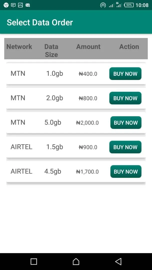 This app helps you purchase data at extremely cheap rates. It's offline feature makes it possible for you to purchase data even if the you have no internet. Data delivery is extremely fast and there very minimal downtime The offline feature transmits your orders through SMS, hence using the internet is optional. Download this app, checkout our amazing rates. You will be glad you did. Although telecom networks can decide to change their prices at anytime, This app will always give you data the cheapest possible rates in Nigeria....