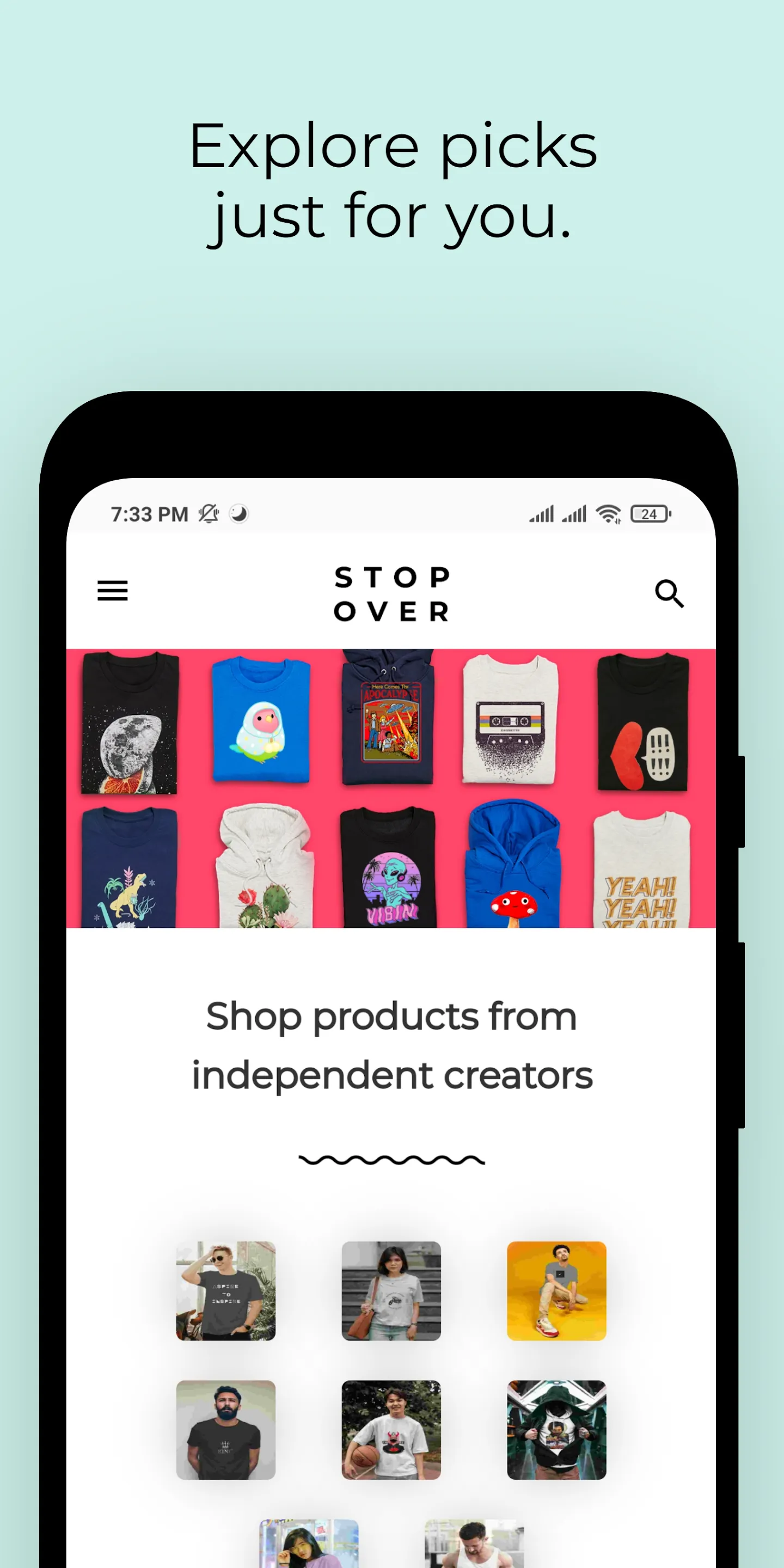 Shop unique designs on 50+ products and express your own crazy style. Allow you to shop from creators who have a unique idea for your next t-shirt, we print and ship directly to you and every order pays the artist. Download the App and find your next t-shirt, hoodie, tank-top, crop top, cushion, mug, or even mouse pad printed on a unique design especially made for you. We provide PREMIUM quality fabric at a very AFFORDABLE price. Why purchase from independent artists? ...