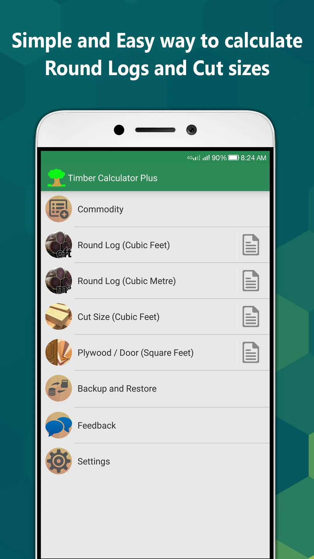 Timber Calculator Plus is the simple and easy way to calculate cubic of Round Logs, Timber Cut sizes, Door, Board, Plywood etc. It is the best application for timber merchants and sawmill calculations. Crate and send Estimate, Purchase or Sales order, Quotations to your customers easily. - Round Log Cubic calculator (cft) - Wood Cubic Meter calculator (cbm)...