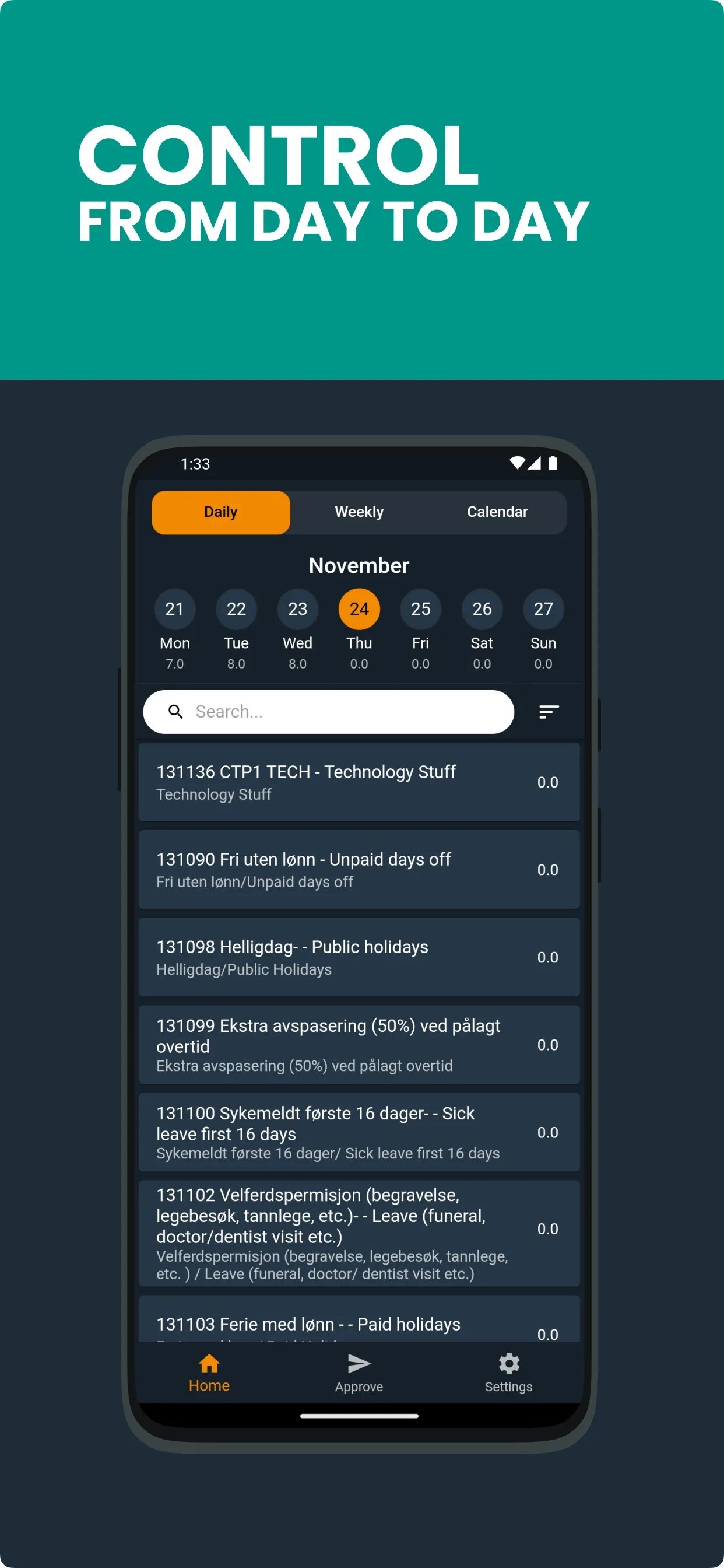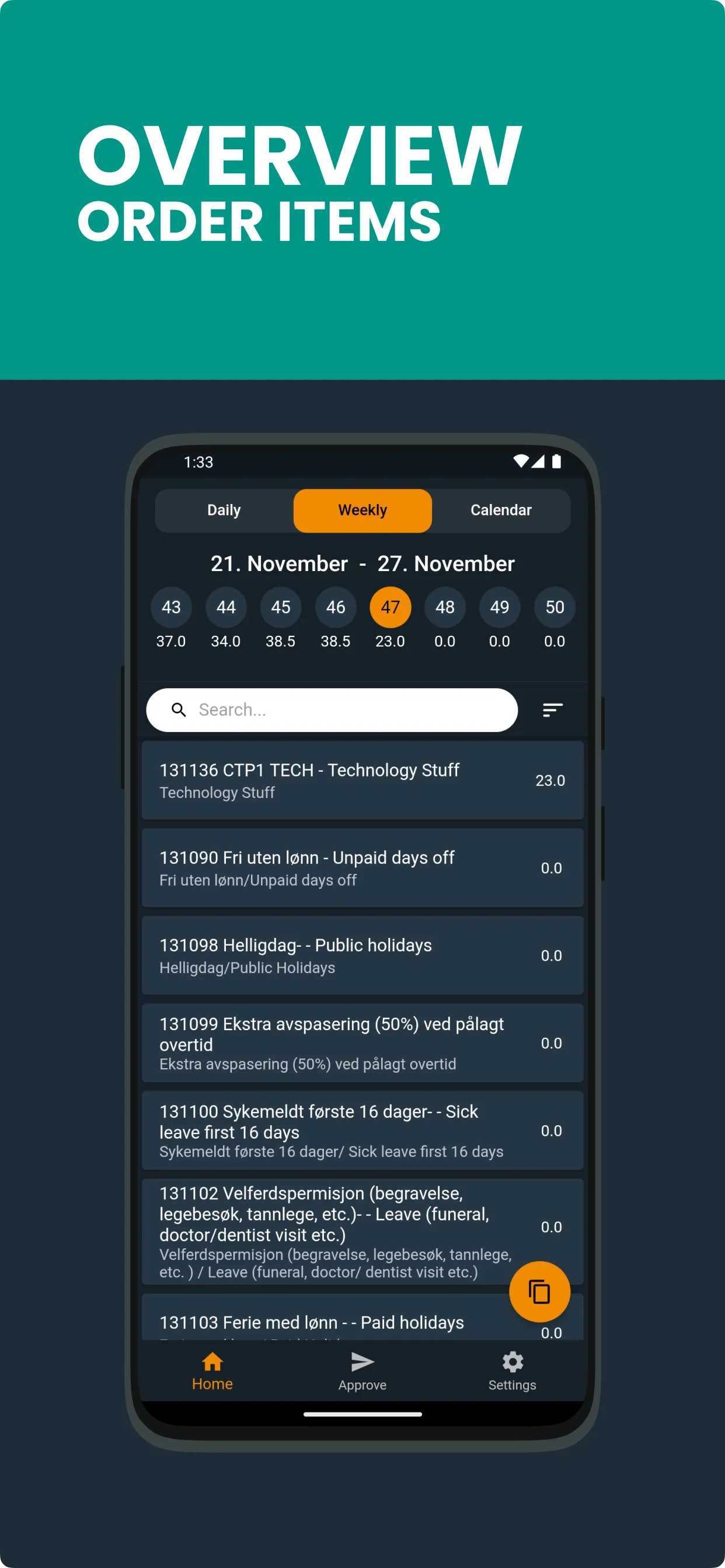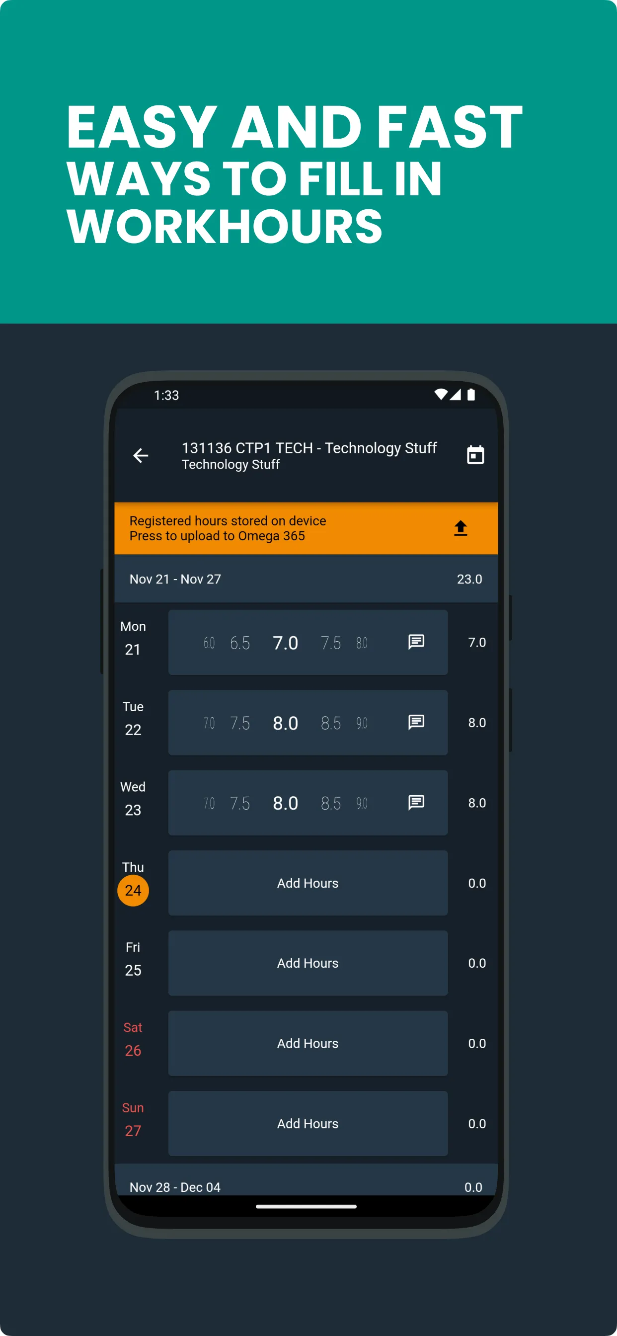 Register your work hours during the day, and get an nice overview of all your registered work hours the last month. Omega Timesheet is a free application. The app offers customers of Omega 365 an easy way to register their work hours on the go.