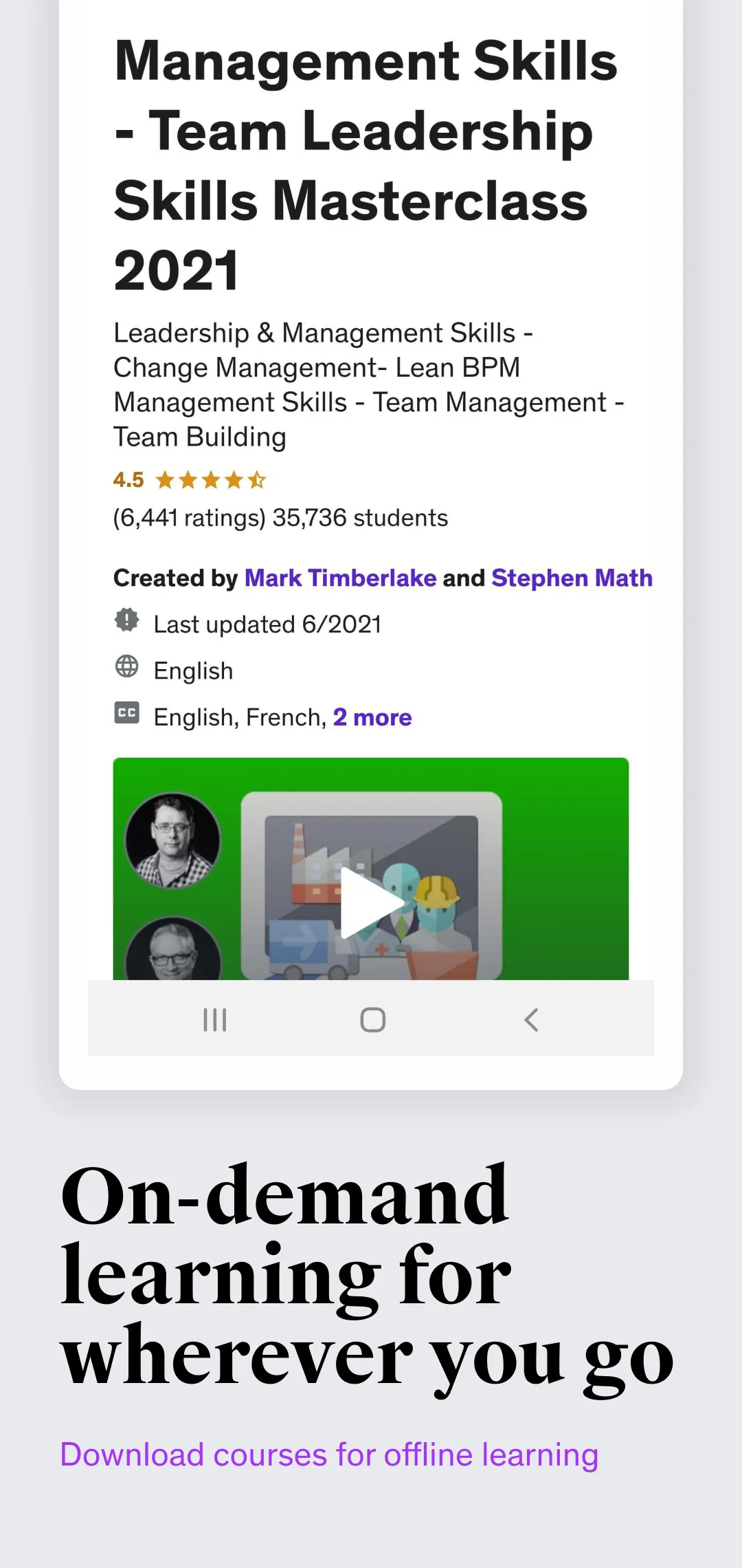 Udemy Business features 17,000+ top-rated and most relevant courses for you to learn new skills anytime, anywhere. From software development, IT, design, leadership to communication skills, the Udemy Business mobile app puts the freshest, most in-demand content in your hands. Upskill your talents and learn from highly respected real-world practitioners, thought leaders, and experts from around the world. *A Udemy Business license is required to access this app. Features: Stream course videos, listen to audio lectures and view course materials View your Learning Paths on the go...