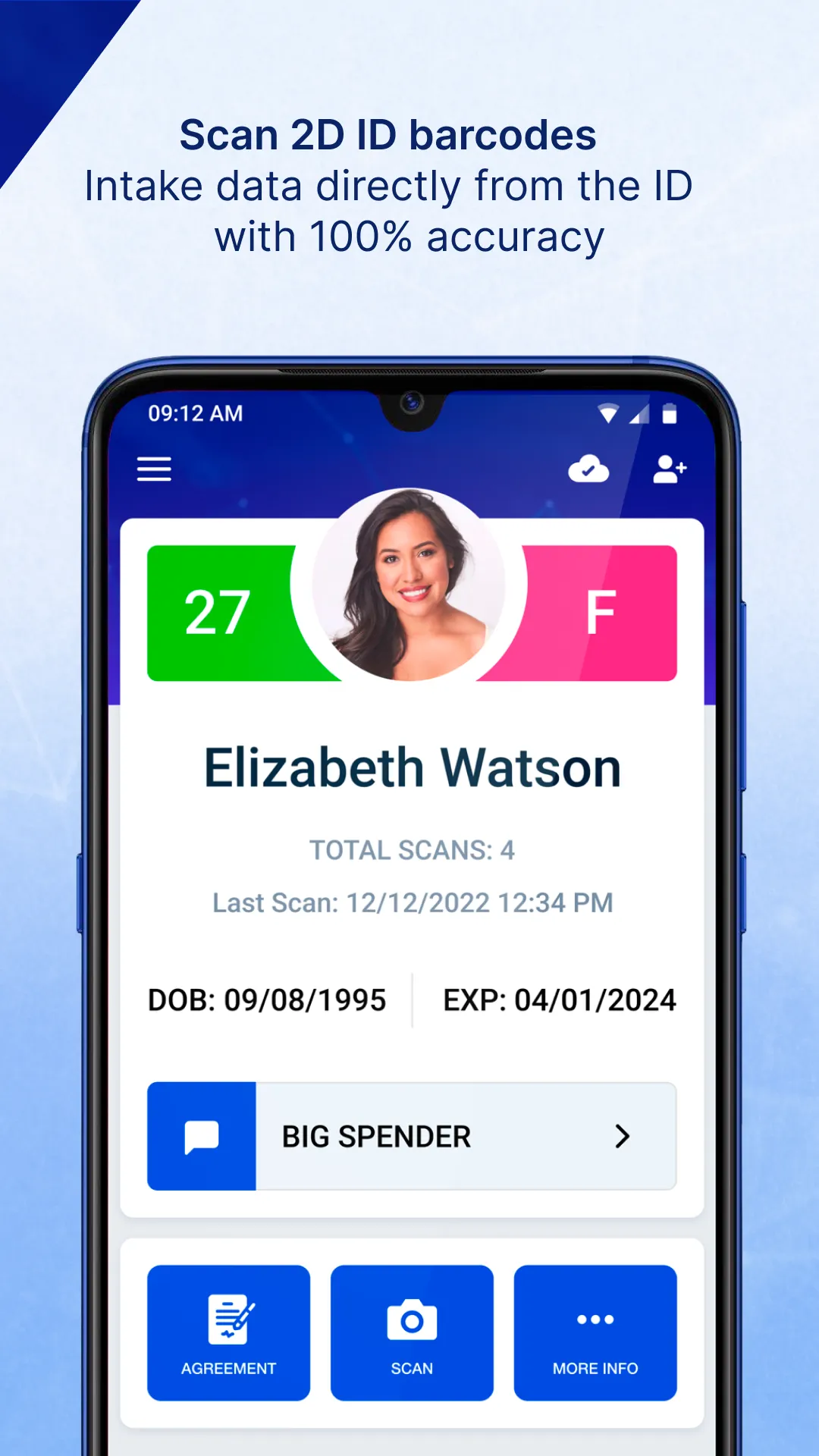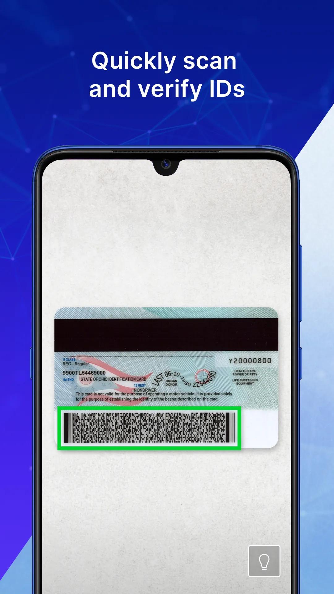 VeriScan Online - ID scanner app with online CRM tools such as automated data collection and membership management. The app is designed to scan IDs and scan drivers licenses from all 50 states and Canadian provinces. HOW IT WORKS -- Requires an active VeriScan Online subscription from (30-day free trial available at signup). Requires internet access to synchronize with the VeriScan Online Portal. Just scan the barcode on the back of your ID (such as a USA issued Driver's License or State ID) to collect the Name, Date of Birth, Address, ID Expiration Date, and Age of your visitor. Using the VeriScan Online portal, you can set up groups, alert lists, and multi-scan alerts....