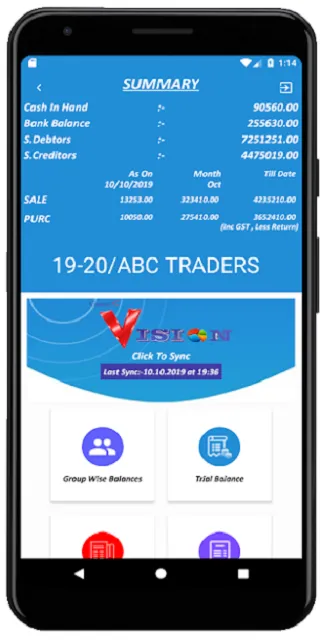 VISION Accounting App Install VISION Accounting App to view VISION Accounting data on mobile. In VISION Accounting app, User can view the Group wise balances, Trial Balance, Ledger , Account Statement, Bill Wise Registers,Inventory and so on. VISION Accounting App is designed for the users of VISION Accounting Software so they can view their VISION Accounting Software data on their mobile using VISION Accounting App VISION Accounting App