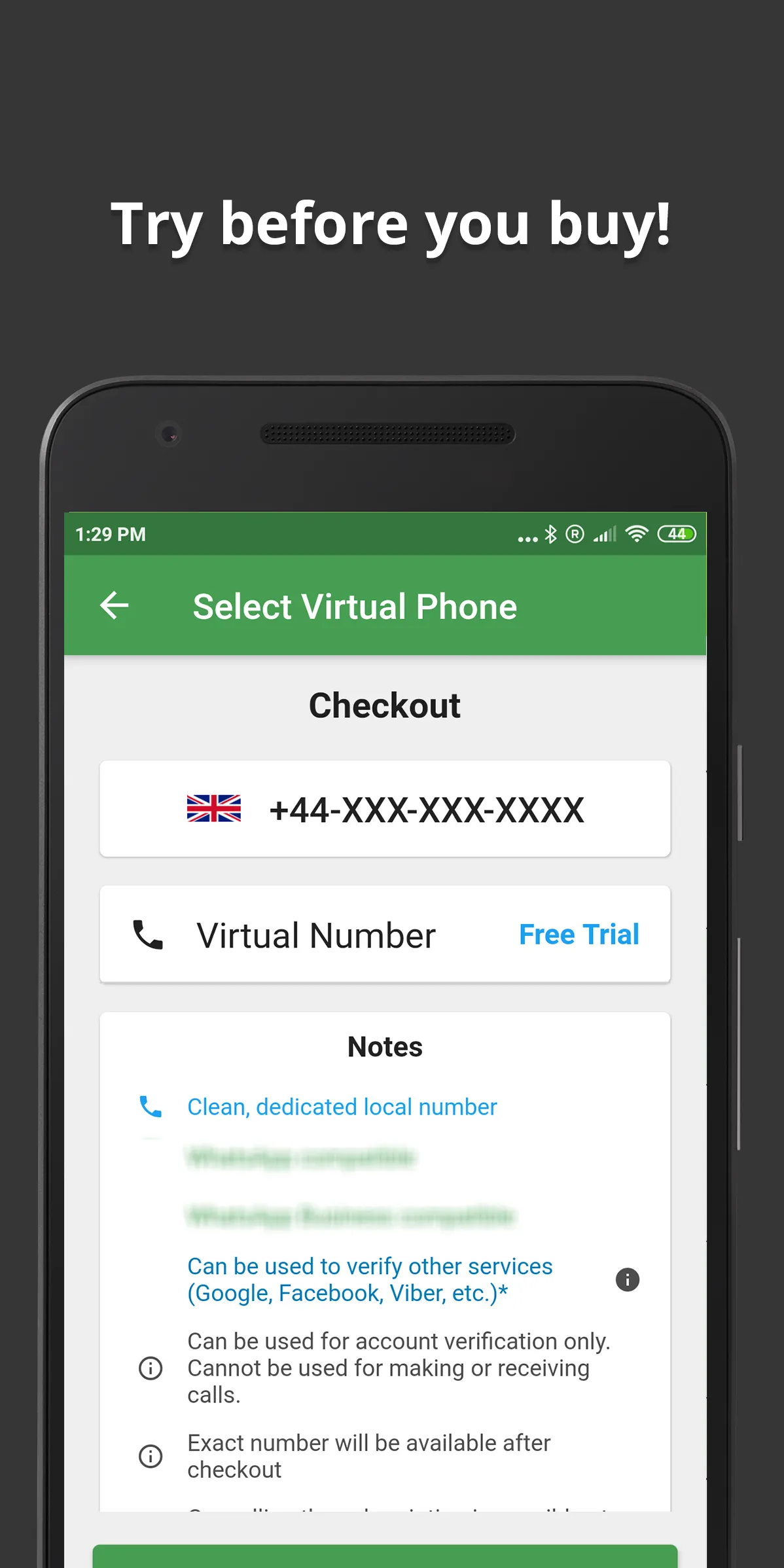 Wabi provides clean, dedicated phone numbers guaranteed to work with WhatsApp or WhatsApp Business! Try our virtual number for free! Wabi number can also be used for account verification of any other service Why Wabi? • Not all numbers are compatible with WhatsApp. Many numbers are blocked from using WhatsApp Business, especially from other virtual number providers!...
